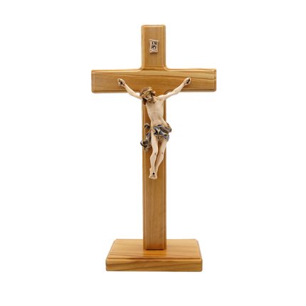 十字架-权杖-橄榄木-带圣尸带底座-13x7cm