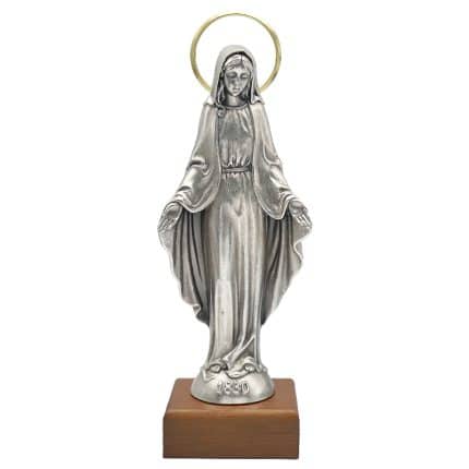 金属雕像-圣母露德-胡桃木底座-13厘米