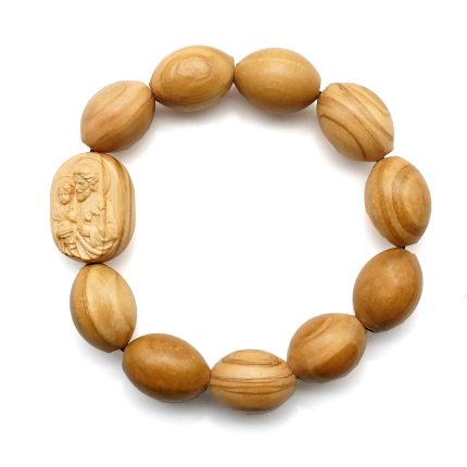 弹力手链-若瑟抱耶稣椭圆牌-橄榄木珠-单圈长20cm