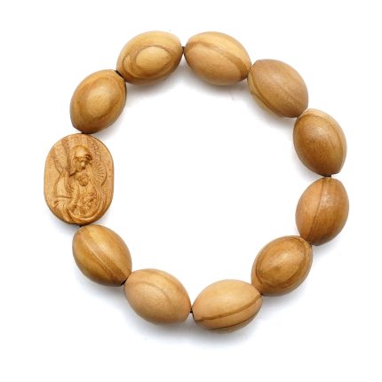 弹力手链-圣母抱耶稣椭圆牌-橄榄木珠-单圈长20cm