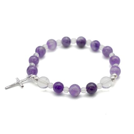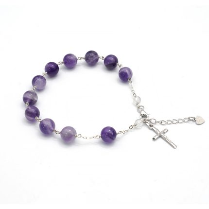 紫水晶-通体925银手链-龙虾扣-十字架-8mm