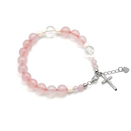 粉水晶珍珠-925银十字架-龙虾扣-8mm