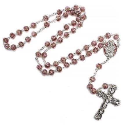 玫瑰念珠-法蒂玛圣母-琉璃花珠原创-5x8mm珠