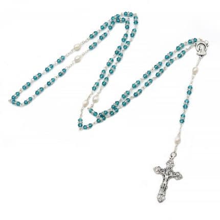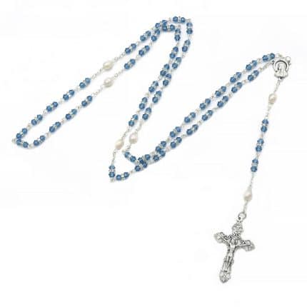 玫瑰念珠-天然珍珠石带盒子-天蓝色