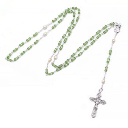 玫瑰念珠-带钻-浅绿色水晶-7.5mm