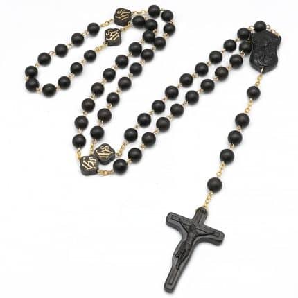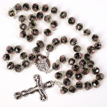 玫瑰念珠-链式-半水晶-黑色-菱形-圣本笃-珐琅处理-带盒