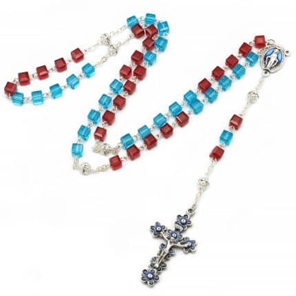 玫瑰念珠-红蓝水晶-6mm-链式-圣母