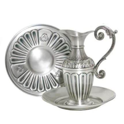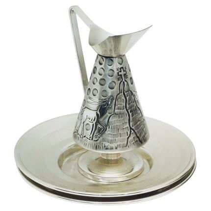 雕刻金属水壶,高24厘米,盘23厘米