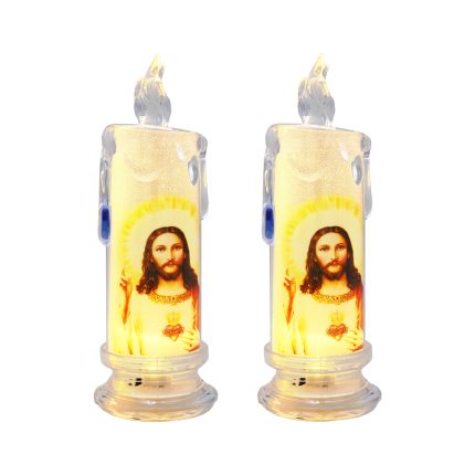 水柱电子蜡-纽扣电池-耶稣圣心B款-6.5×18.5cm一对
