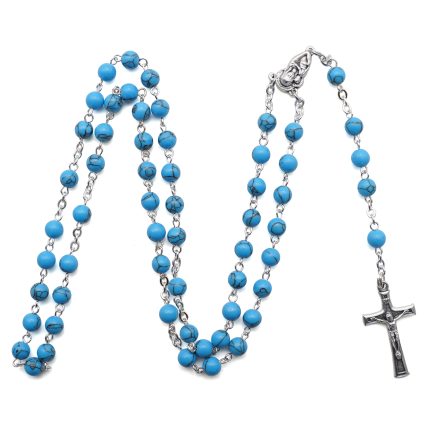玫瑰念珠-圣母抱YS-耶稣圣心-蓝松石6mm送念珠包