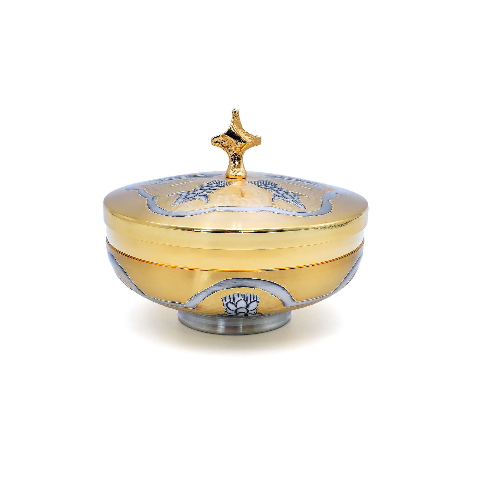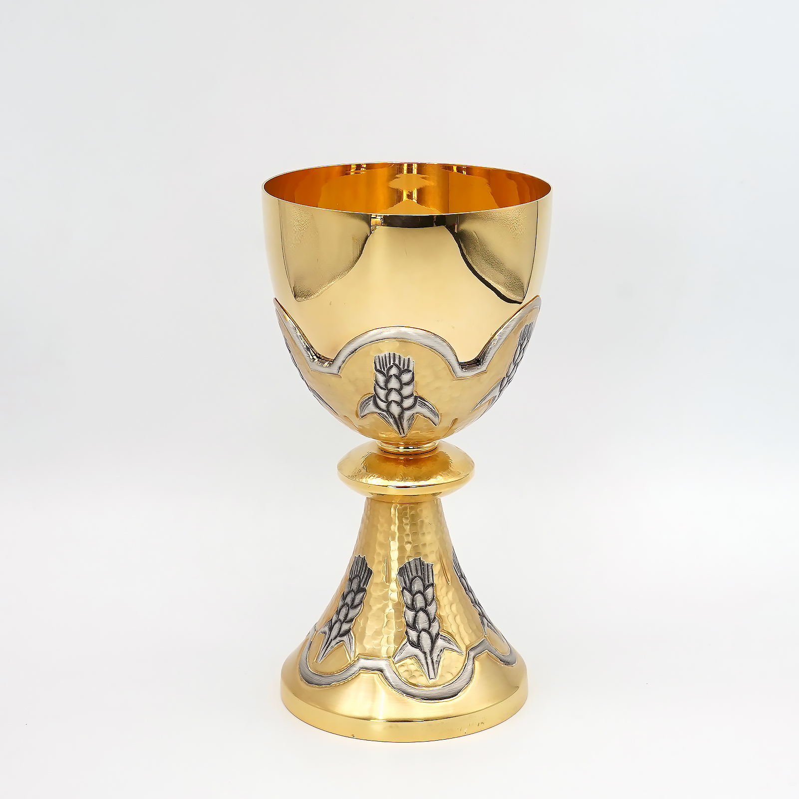 【现货】麦穗图案-圣爵杯圣体碗带盖手工雕刻套装18+10cm