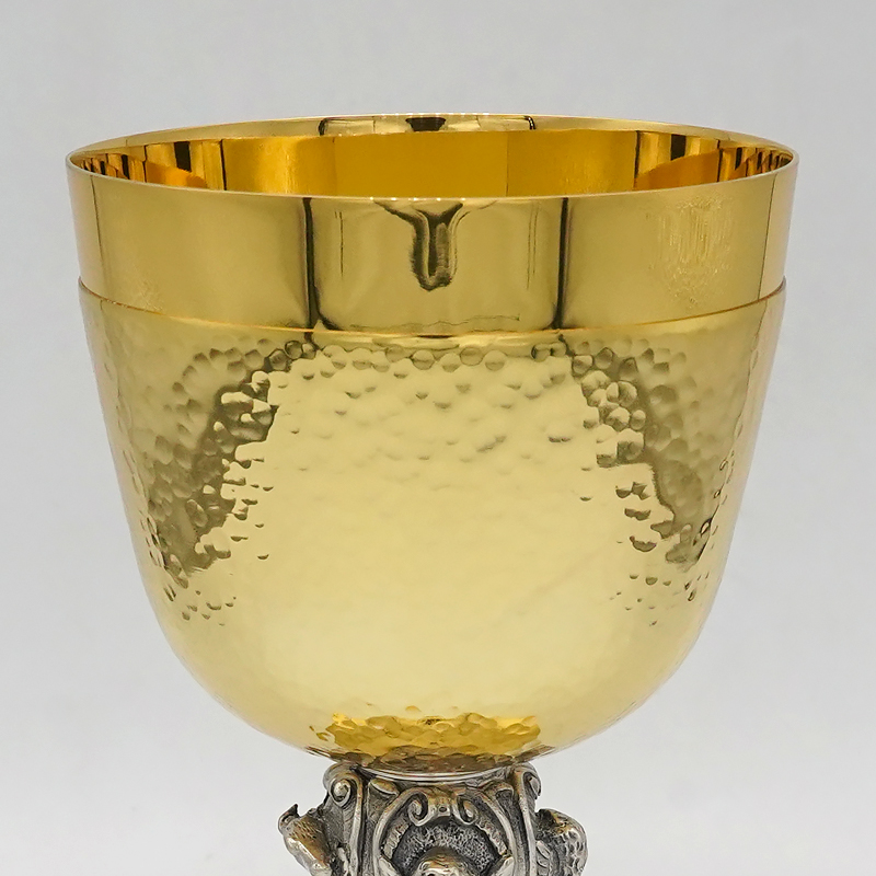【现货】葡标记-錾刻 -银色-圣爵杯圣体碗带盖套装21+11cm