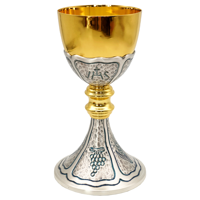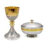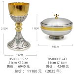 【现货】葡标记-錾刻 -银色-圣爵杯圣体碗带盖套装21.5+11cm