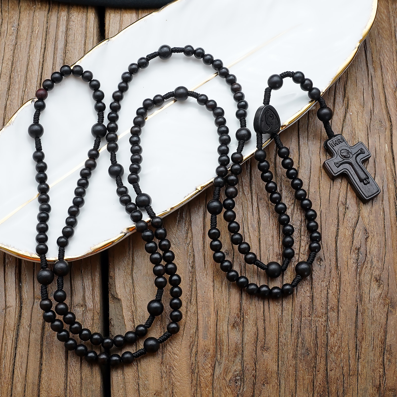 Experience the timeless beauty and spiritual significance of our 15-Decade Rosary with Ebony Beads, designed for devoted prayer and meditation. Crafted with 6 mm ebony beads and 8 mm Pater beads, this rosary combines natural elegance with a minimalist design.