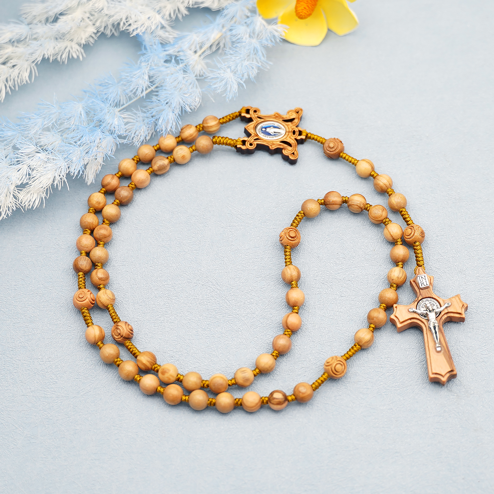 玫瑰念珠-橄榄木圆珠-绳编-花纹珠-异形十字-7mm送念珠包