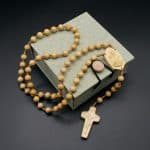 Hand-braided by Sisters, the Boxwood Rosary features 8MM diameter beads and an engraved Rother relief portrait in a gift box.
