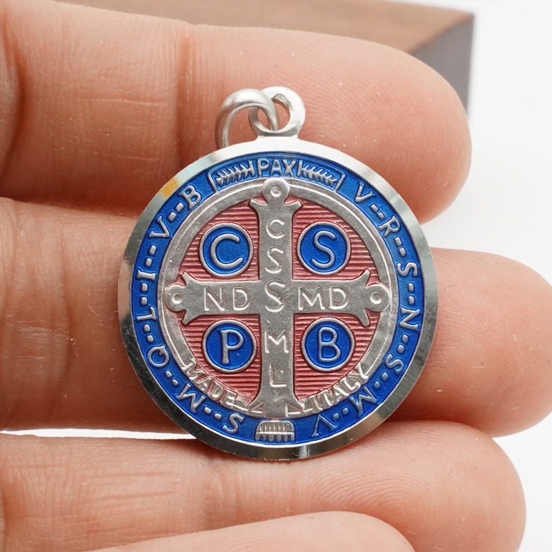 珐琅彩圣本笃圣牌-925银-25mm
