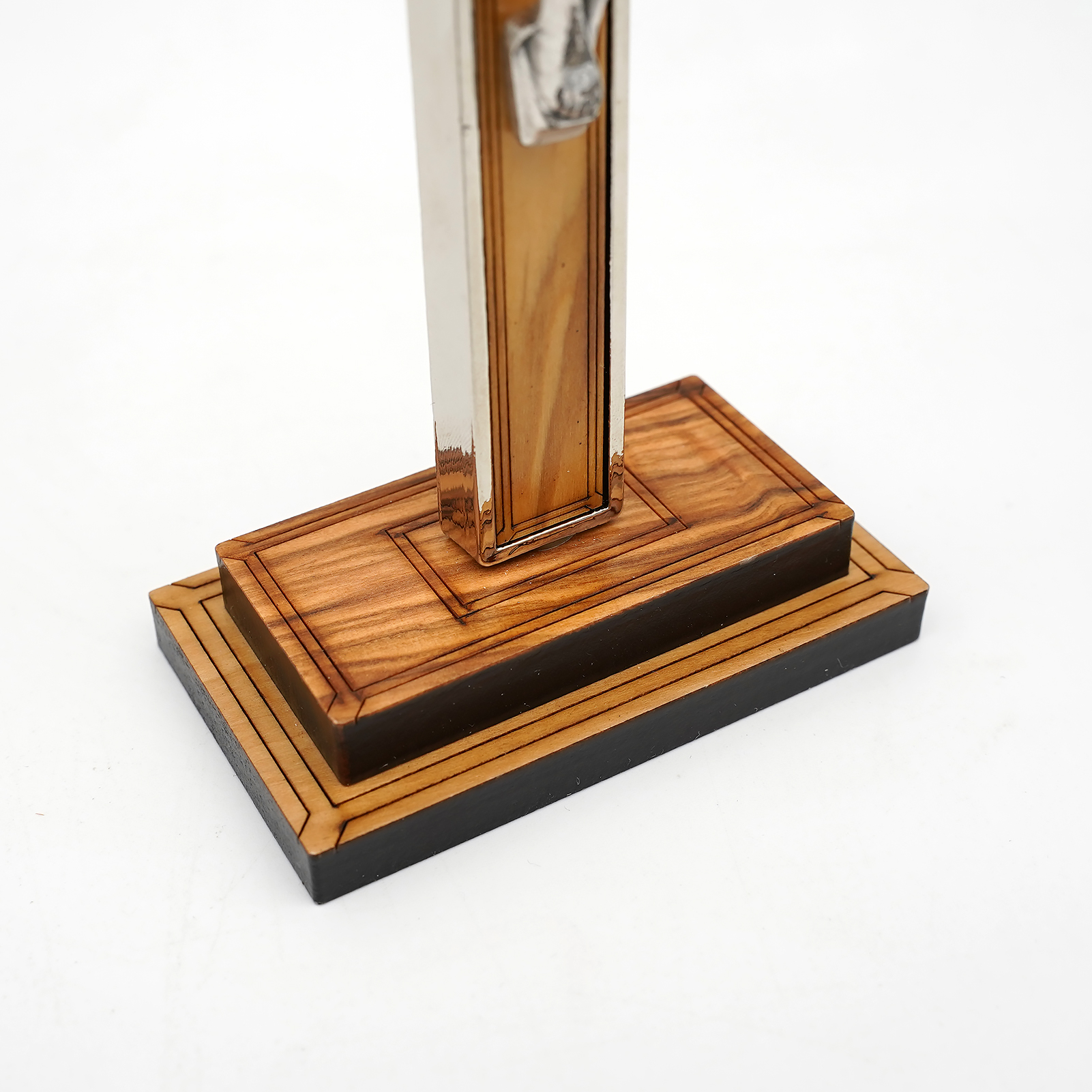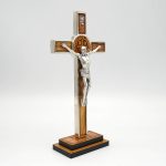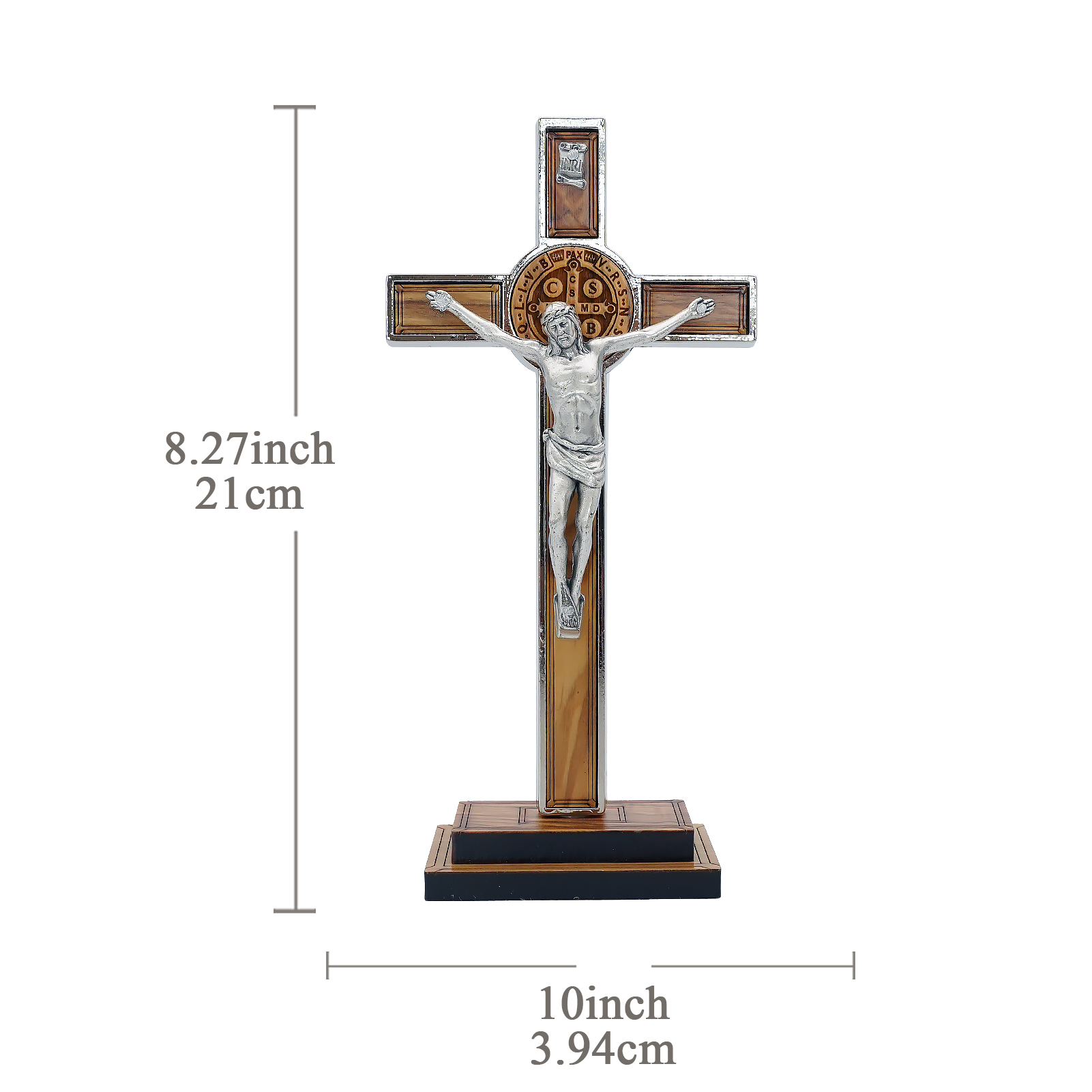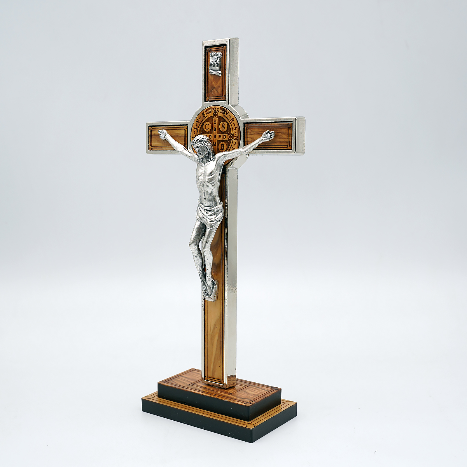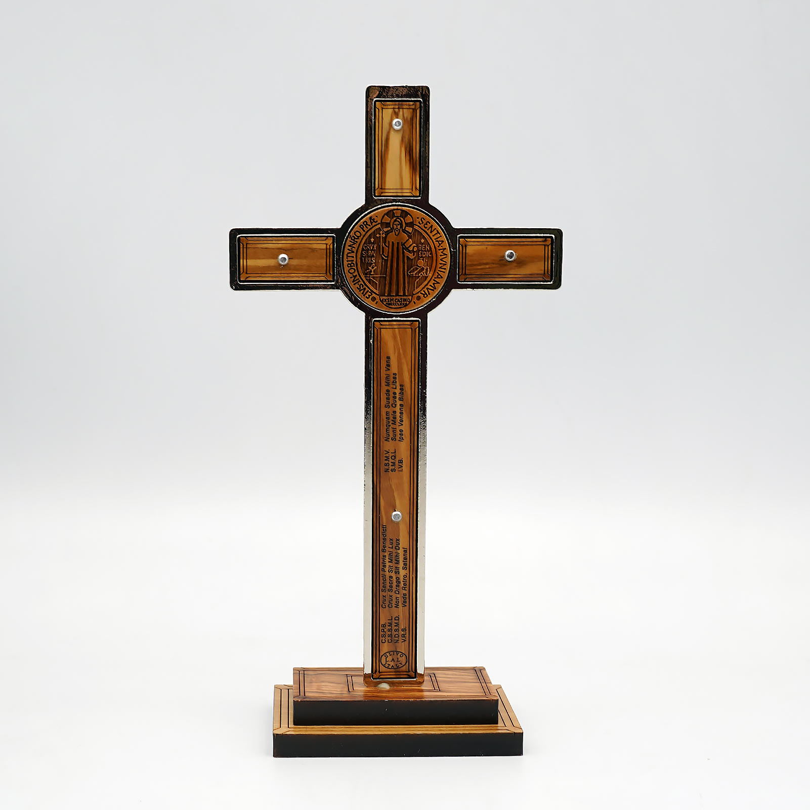 合金圣本笃十字架带圣牌橄榄木带底座-21x10cm
