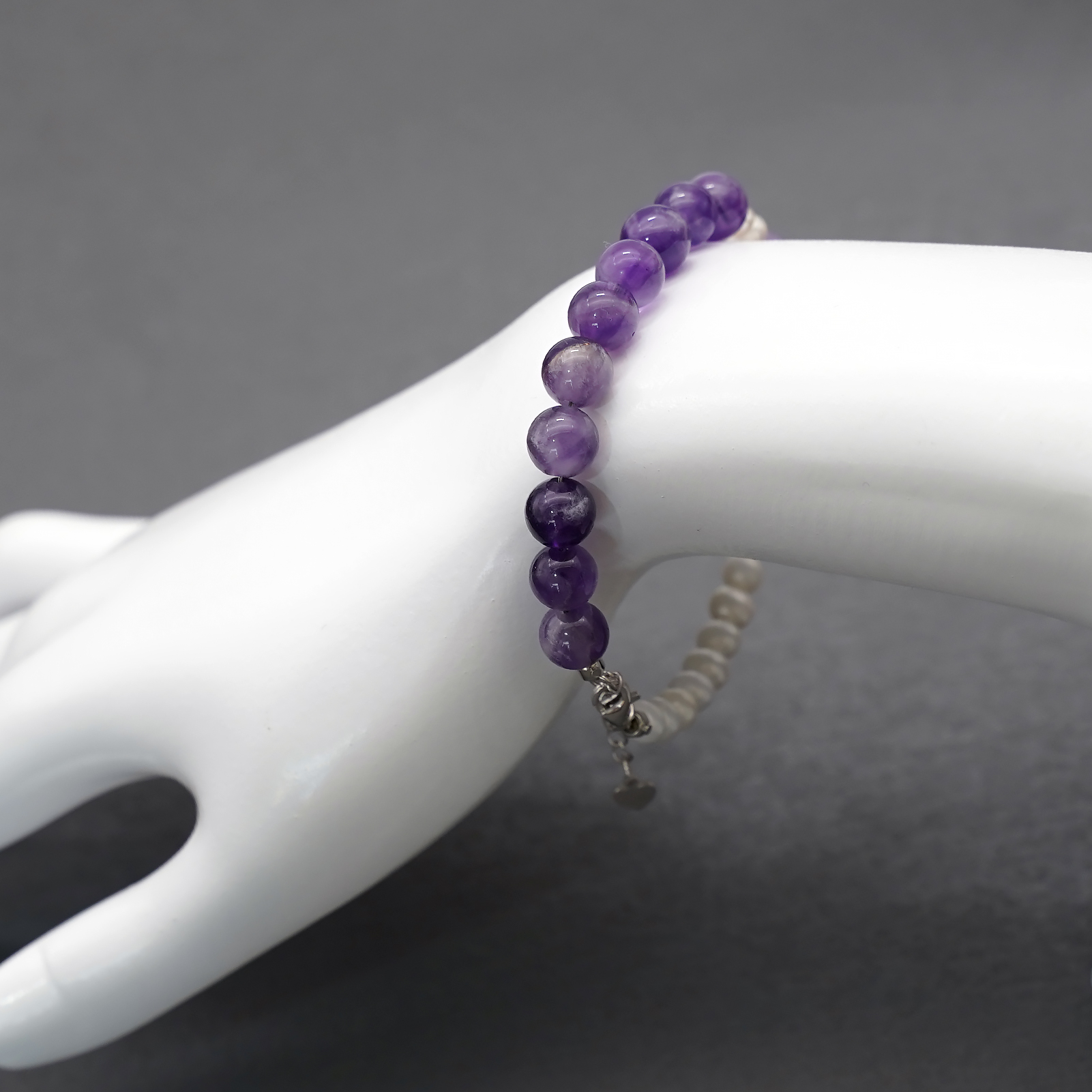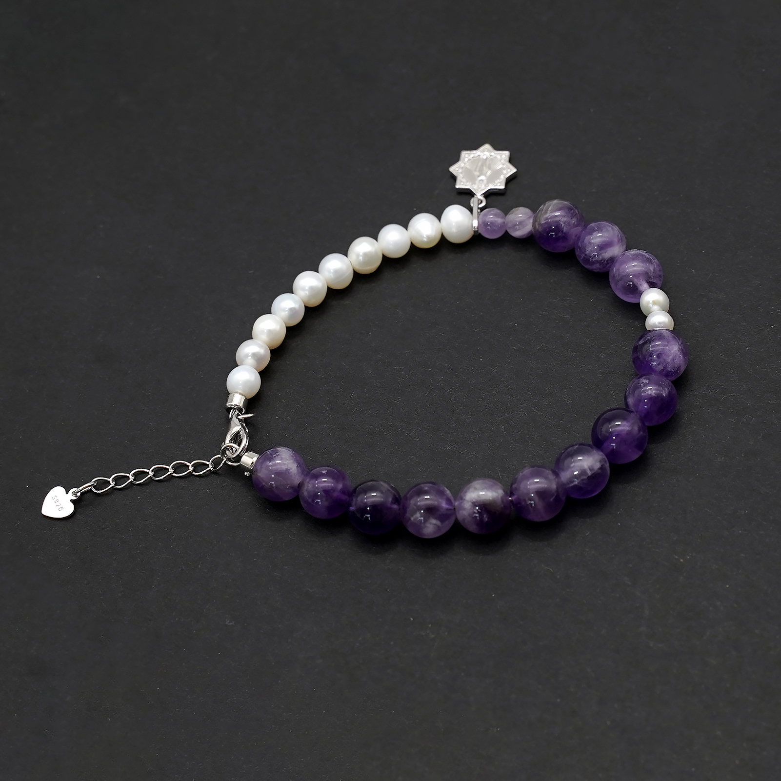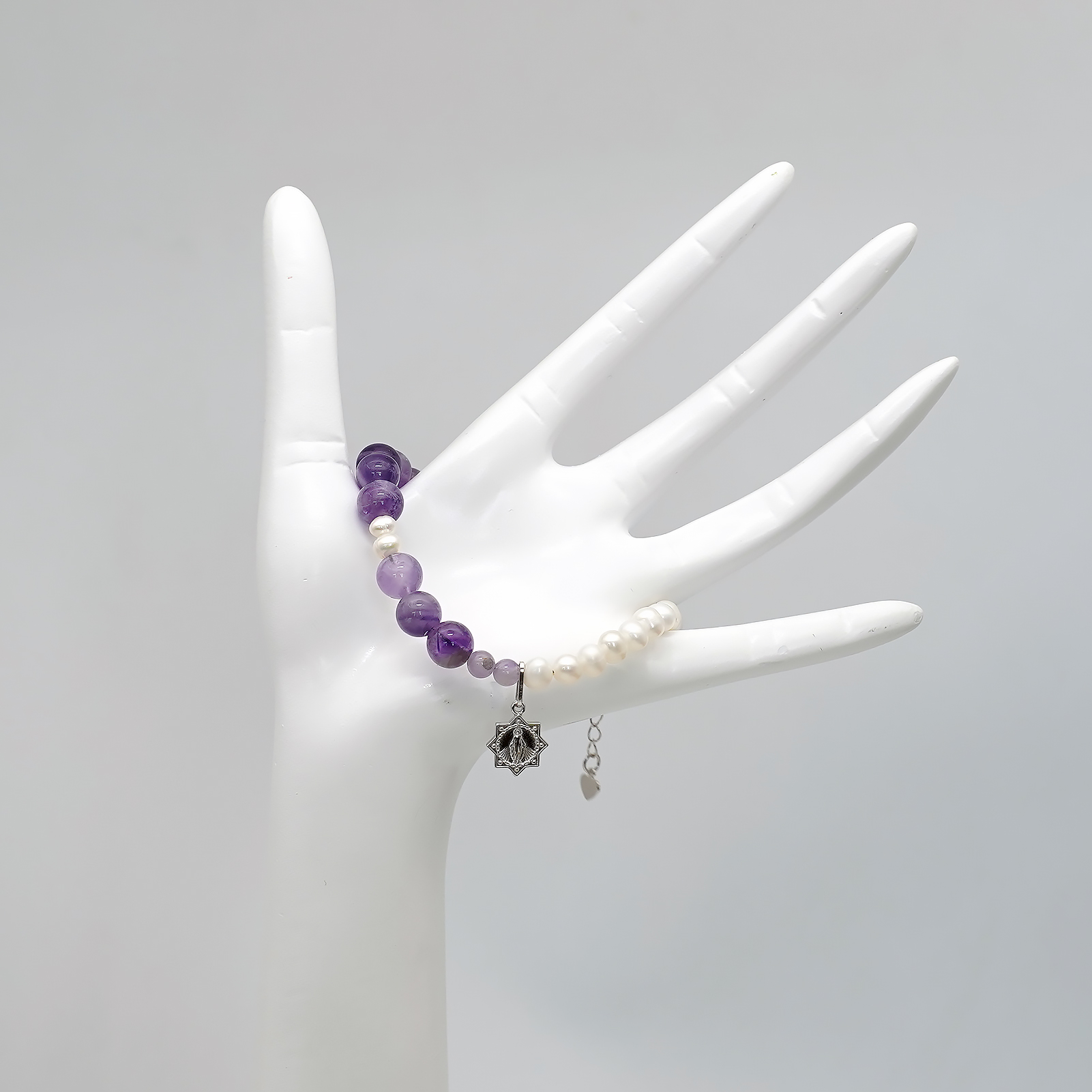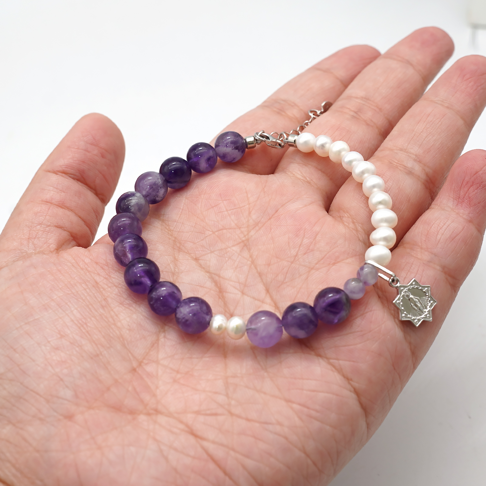 紫水晶-珍珠-925银圣牌-龙虾扣-8mm