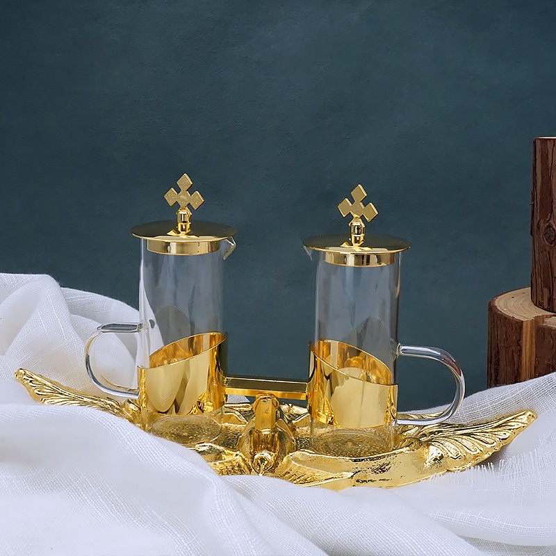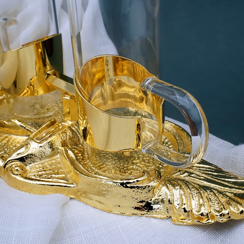 【现货】棕榈叶铜金色托盘酒水壶 24×10 cm – 100 ml