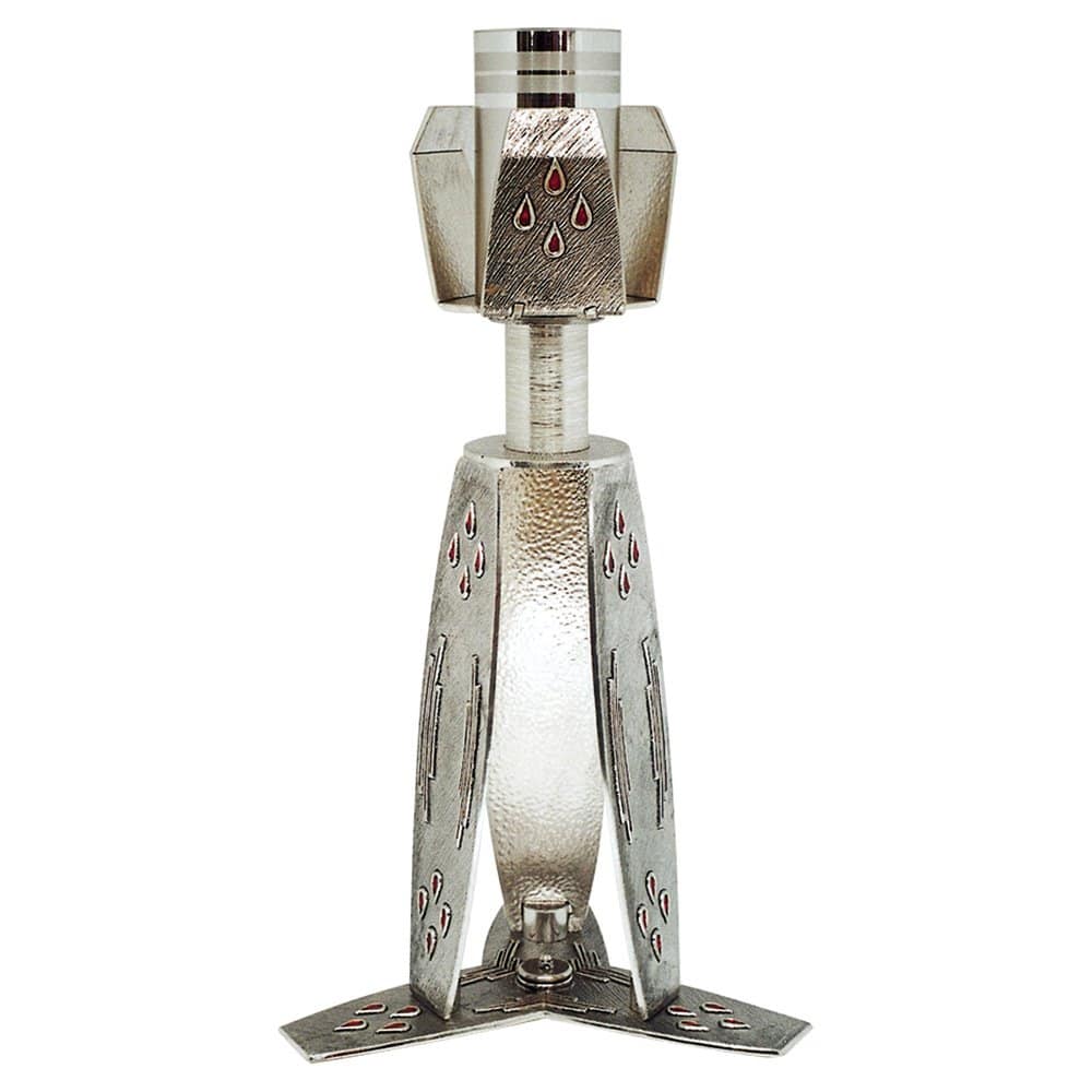 The base for candlesticks with diagonal scratches and red enamel drops.
