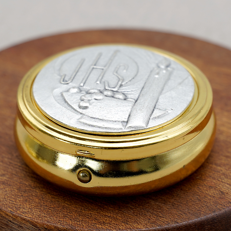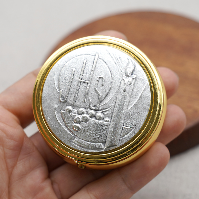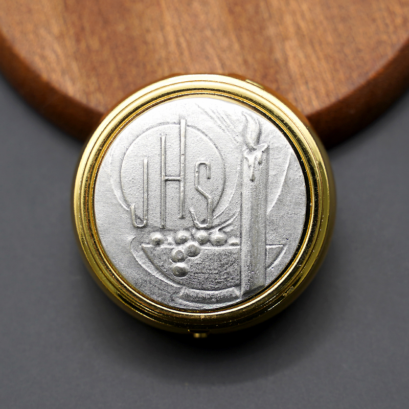 【现货】便携圣体盒- JHS与谷物图案-直径5cm