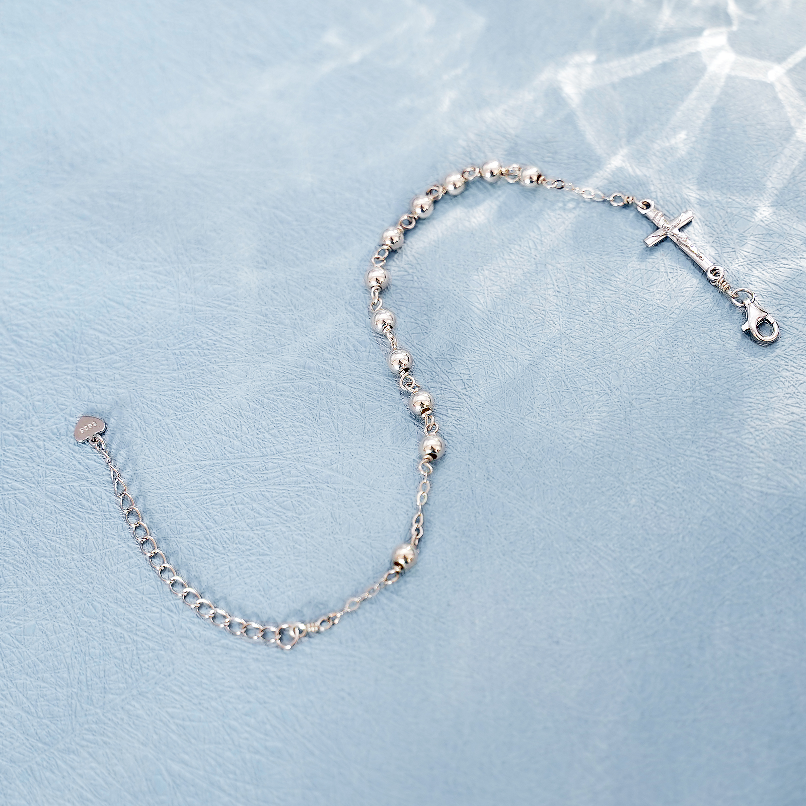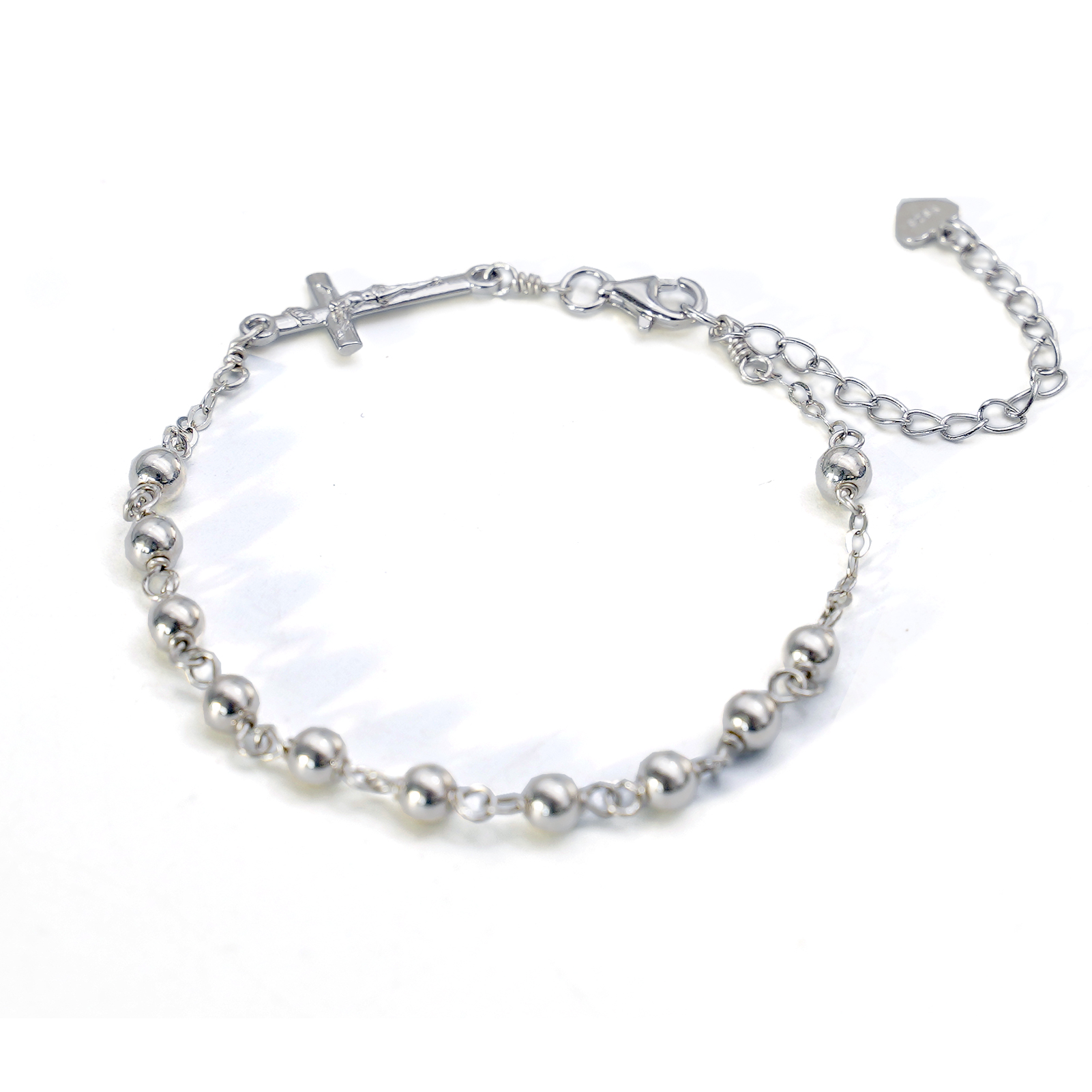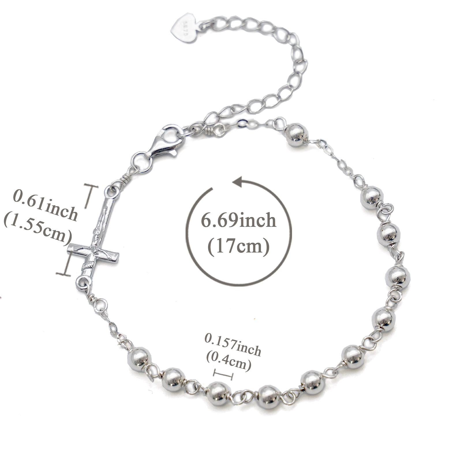 手链-十字架配饰-S925-可延长链-圆珠4mm