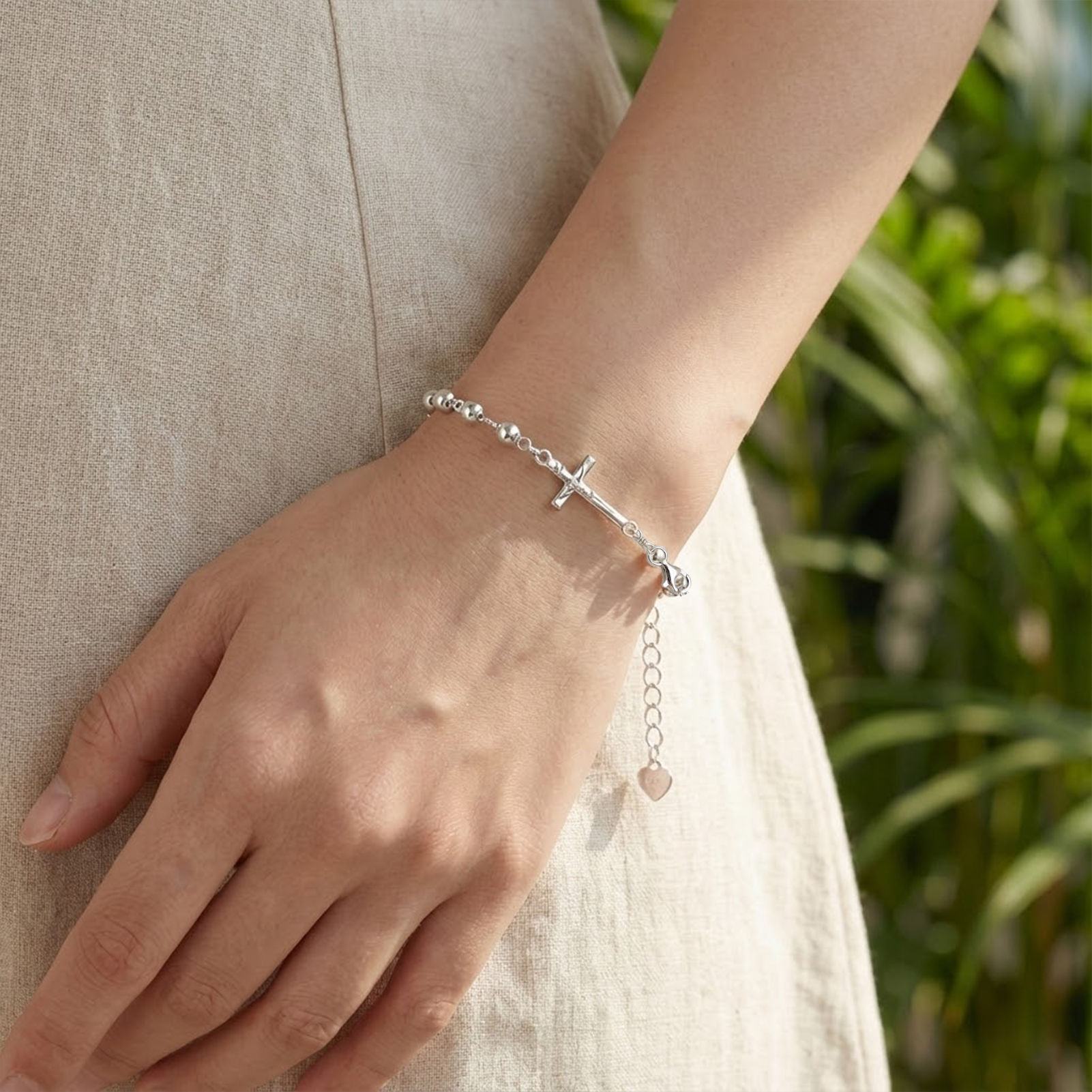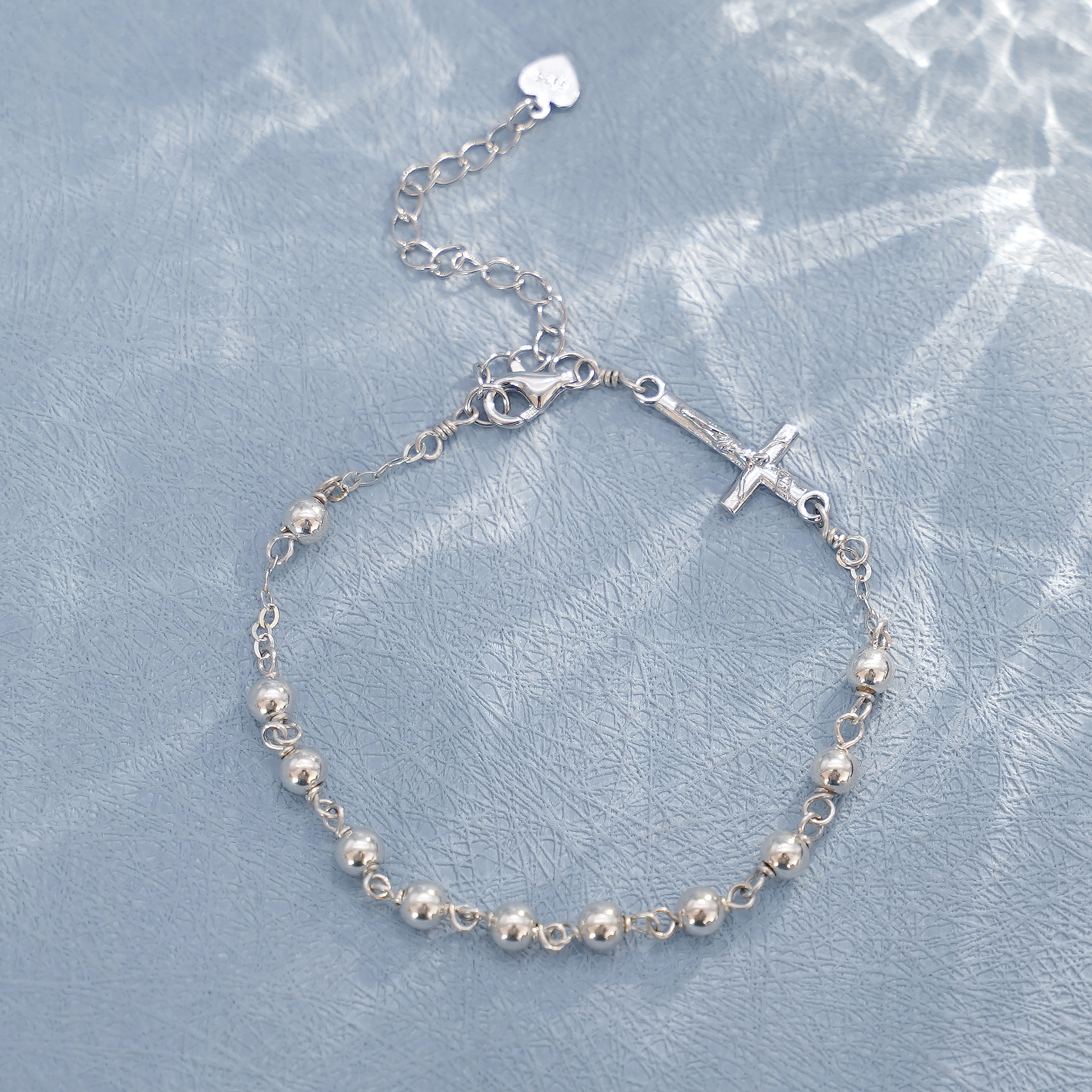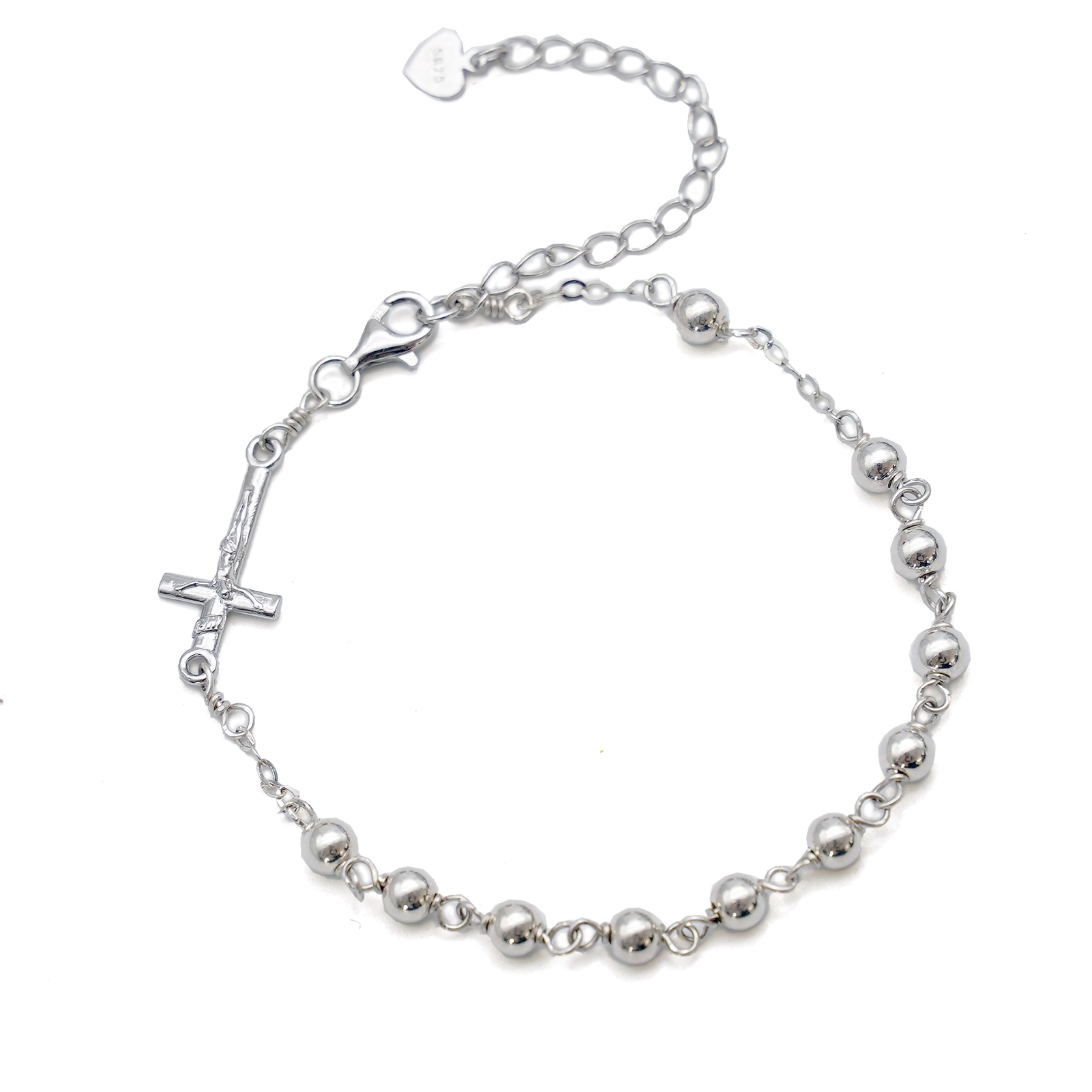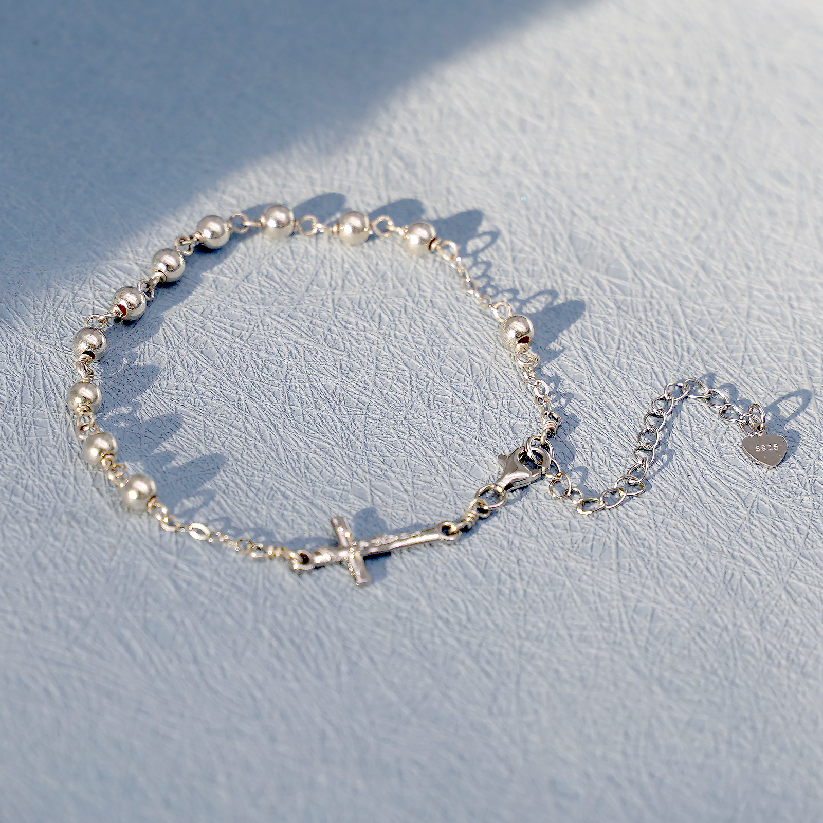 手链-十字架配饰-S925-可延长链-圆珠4mm