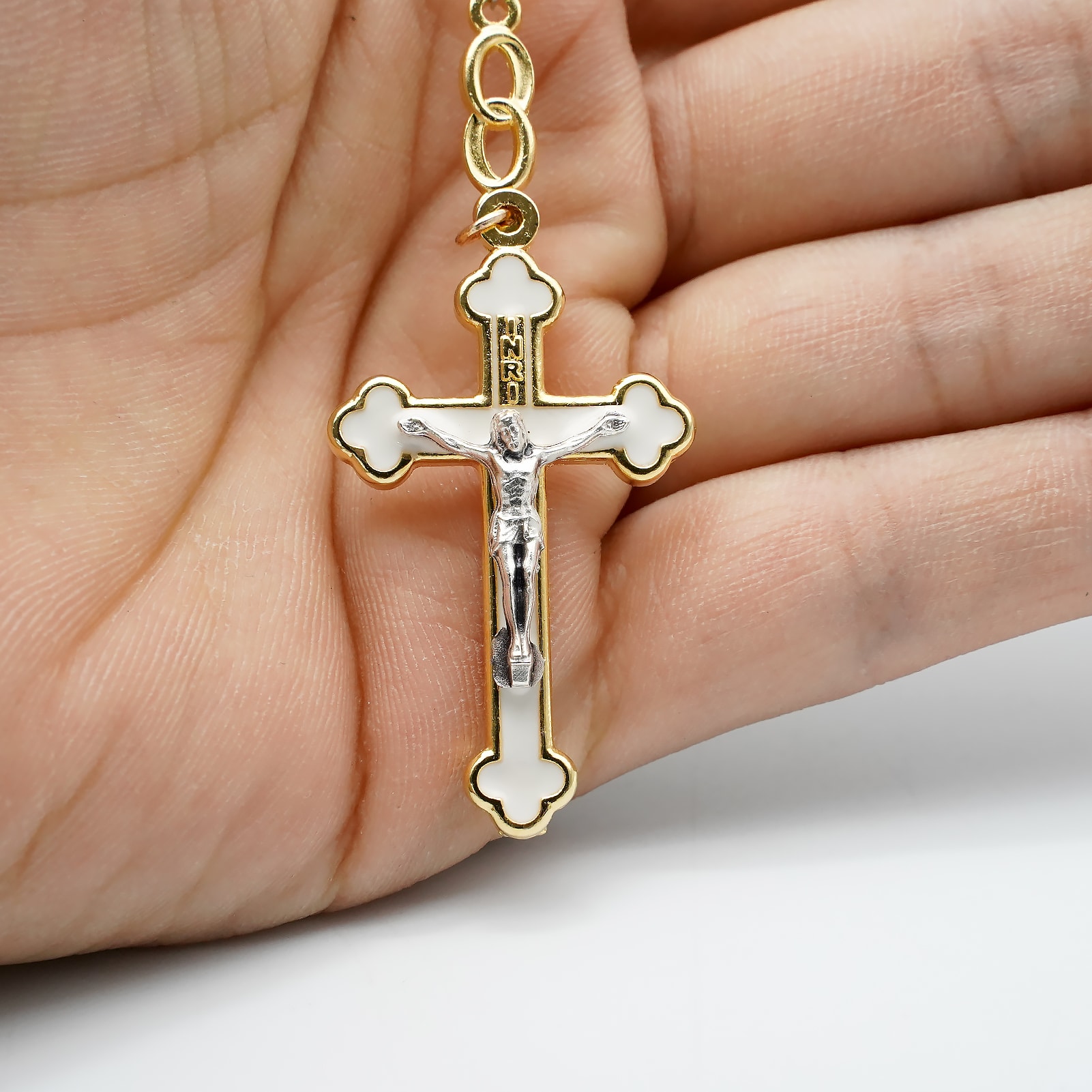 玉髓珠玫瑰念珠 – 珐琅十字架与意大利配件,附礼盒