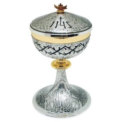 鹿群与荆棘冠主题圣爵 – 高21厘米,杯直径9厘米