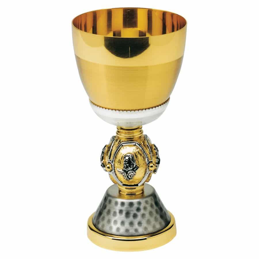Brass chalice with central node in investment casting, representing the four Evangelists.