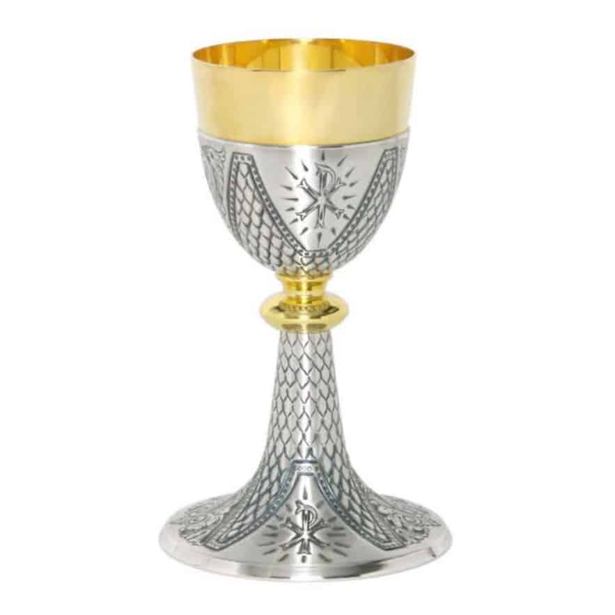 錾刻金属圣爵,杯直径9厘米,高20.5厘米