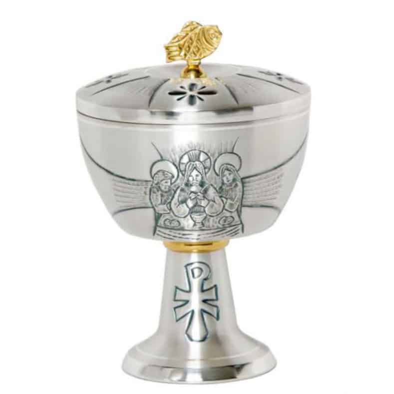 雕刻金属圣体盒,杯直径12厘米,高18厘米