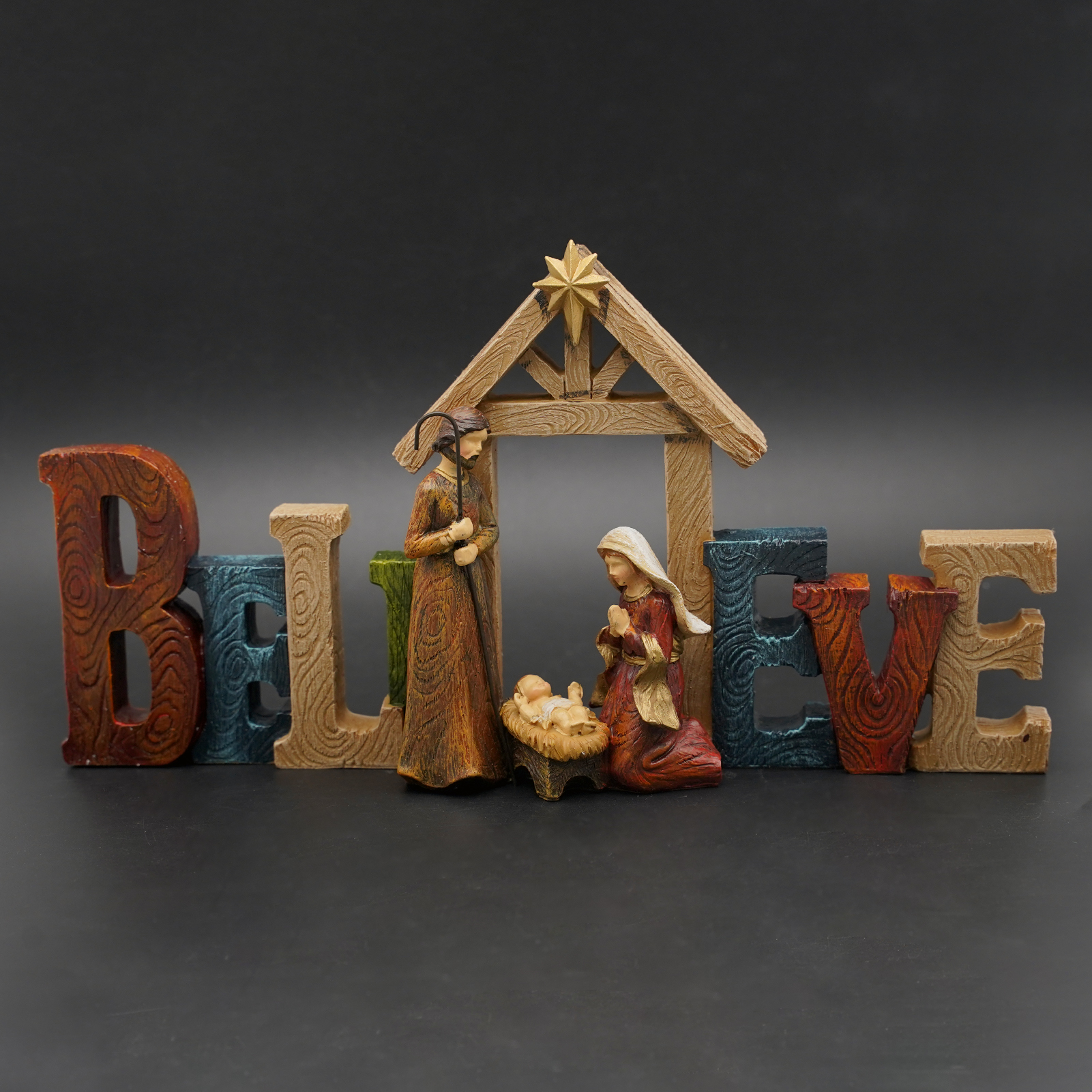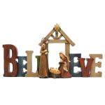 圣诞节-Believe-家庭马槽-房子摆件-18.5x15cm