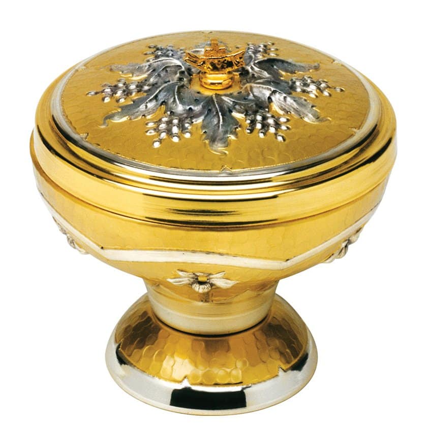 百合花与葡萄装饰圣体盒 – 可供双形圣体领受 – 高14厘米,直径15厘米