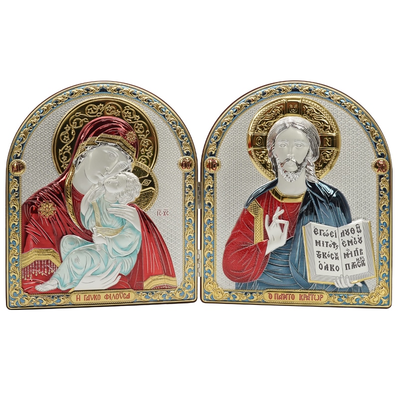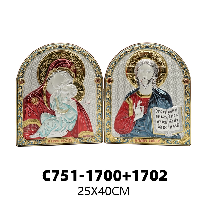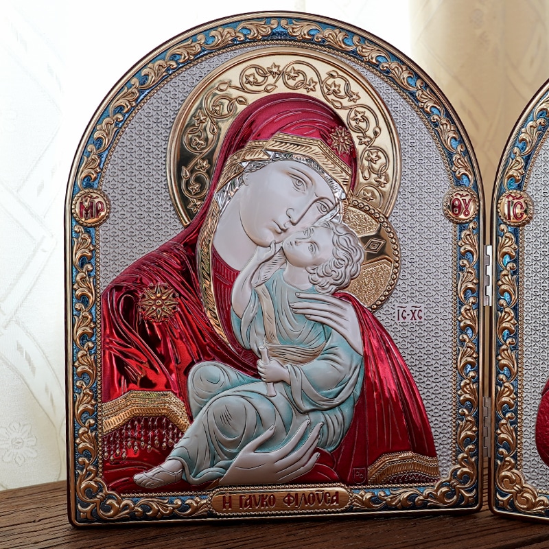 彩色银浮雕摆台圆拱-圣母+基督