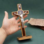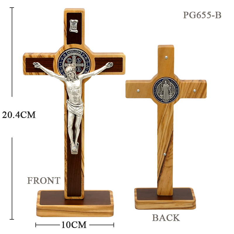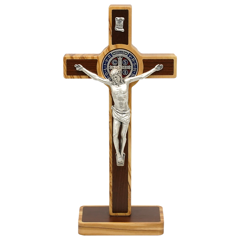 十字架-圣本笃-橄榄木-带底座-20.4x10cm