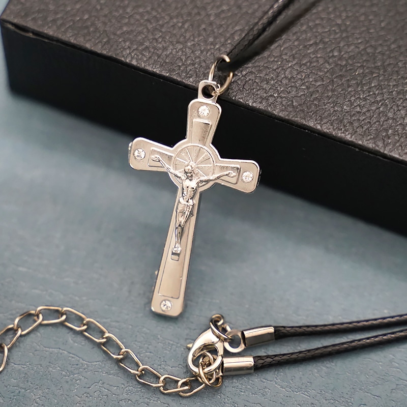 金属十字架-耶稣受难像-白钻-无镍-3.7×2.2cm