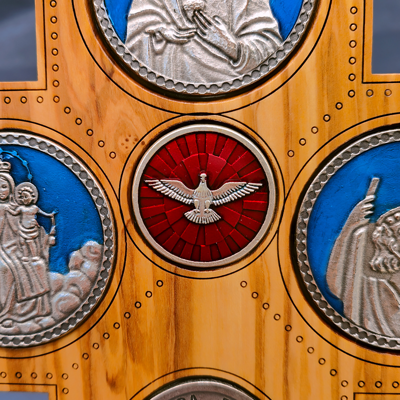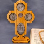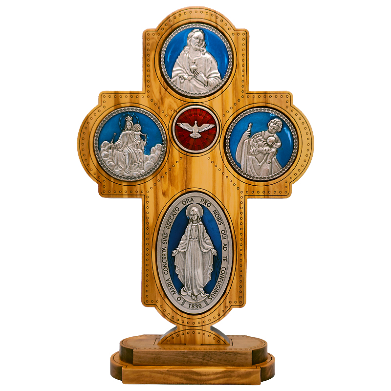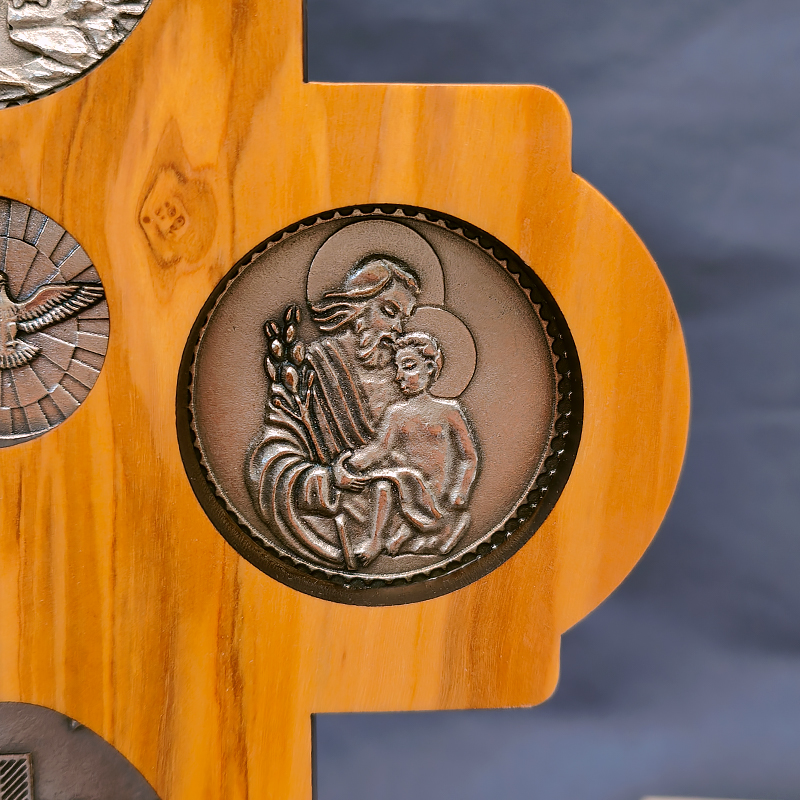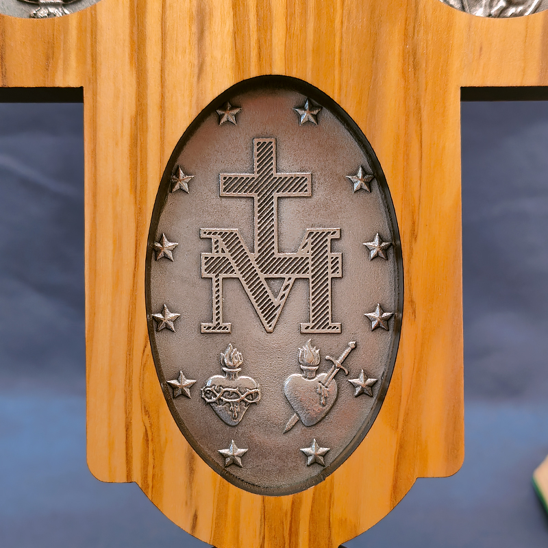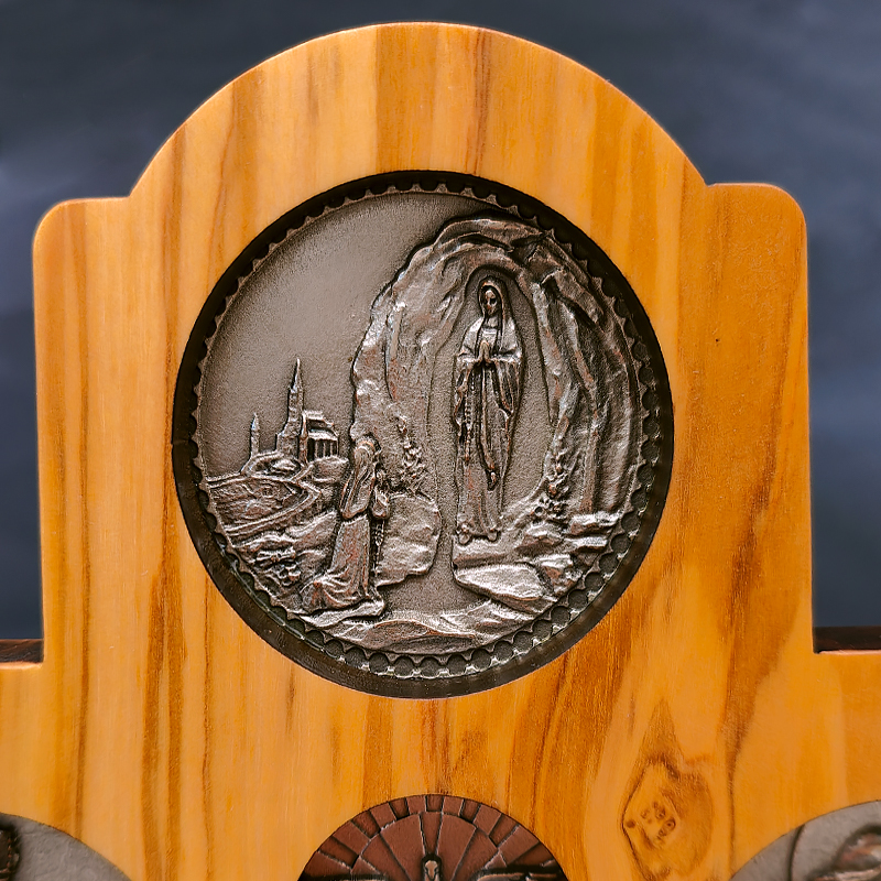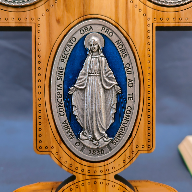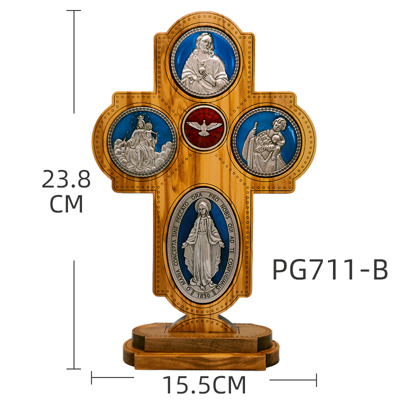 十字架-圣衣圣母-橄榄木珐琅-带底座-23×15.5cm