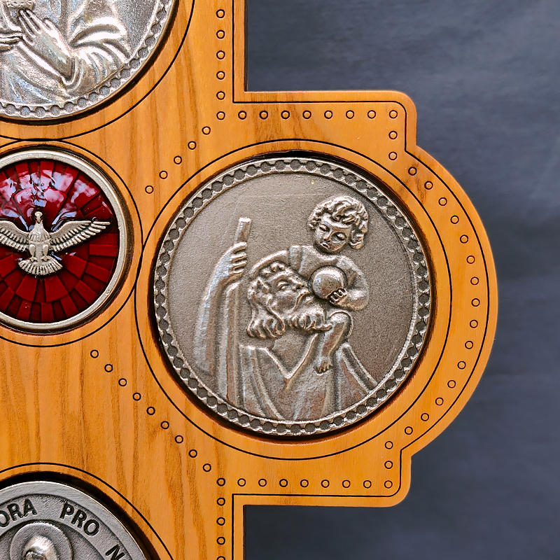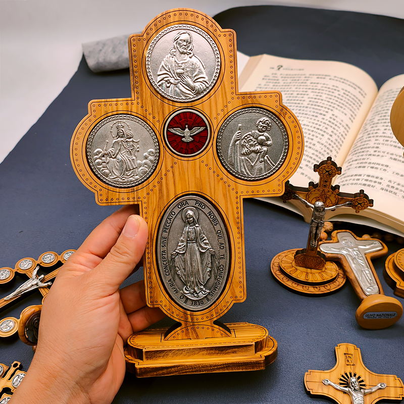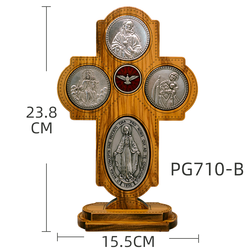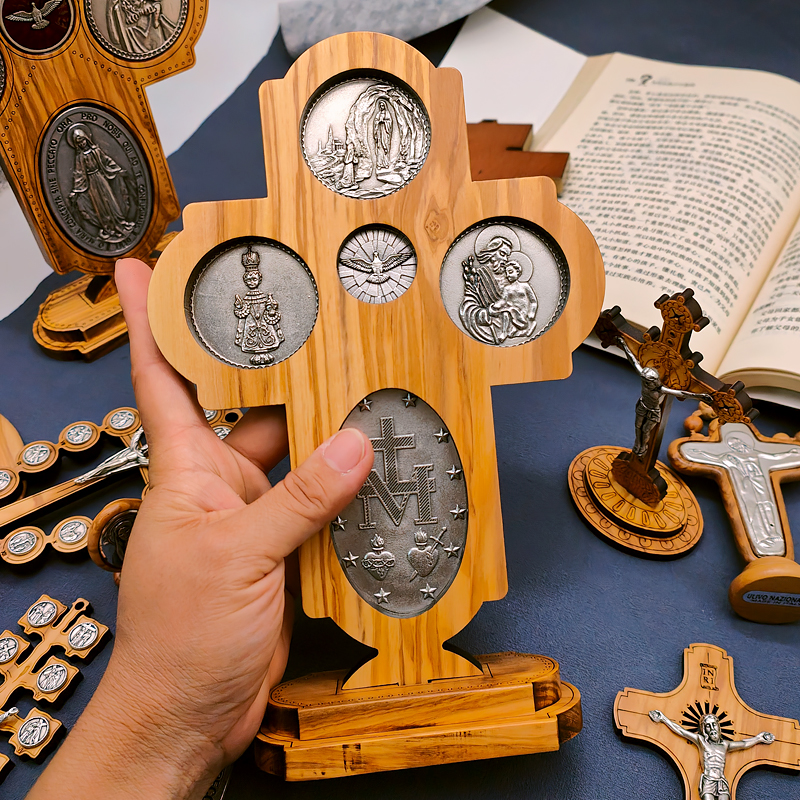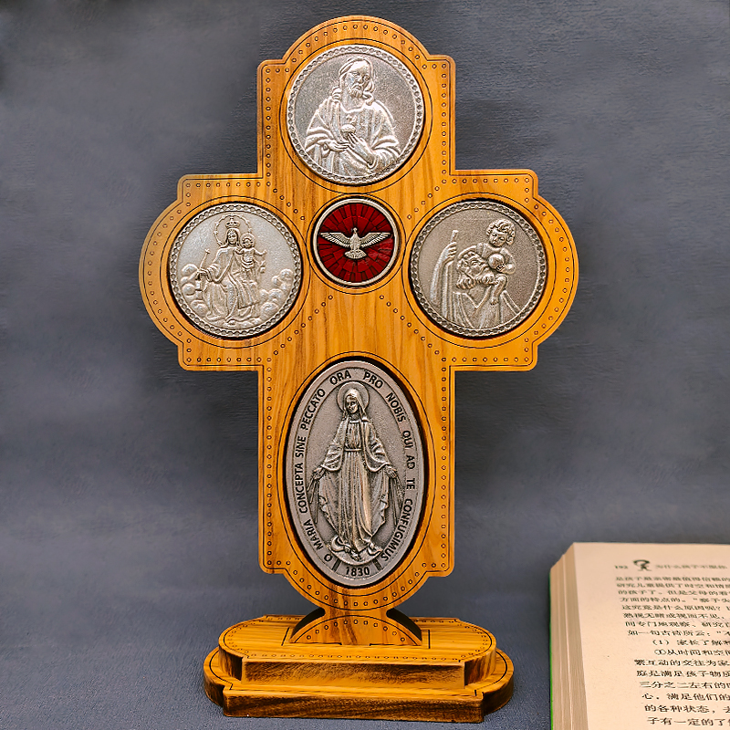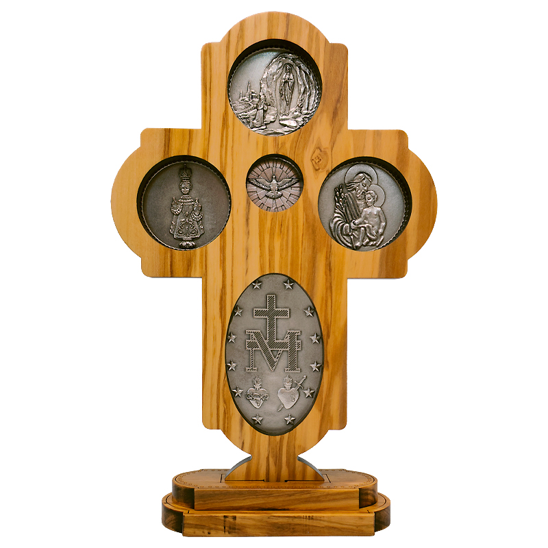 十字架-圣衣圣母-橄榄木-带底座-23×15.5cm