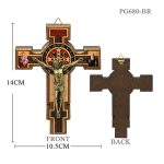圣本笃十字架-桦木合金青铜色圣尸挂件-14×10.5cm
