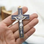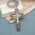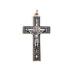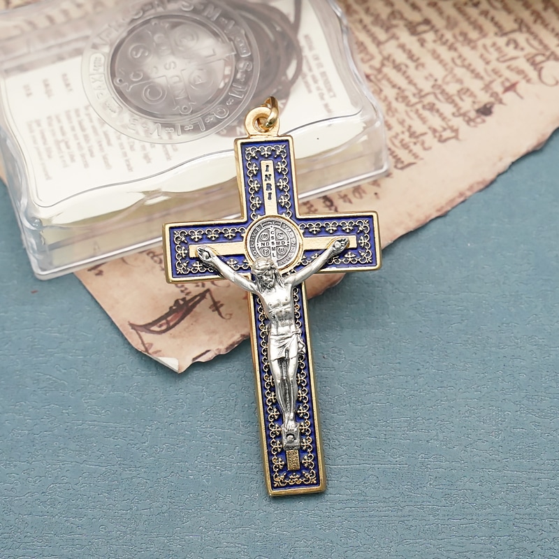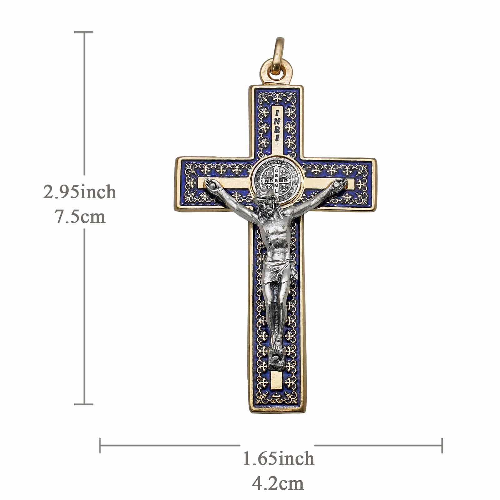 十字架-圣本笃-带装饰图案-金色-珐琅处理-带圈-蓝色-7.5×4.2cm