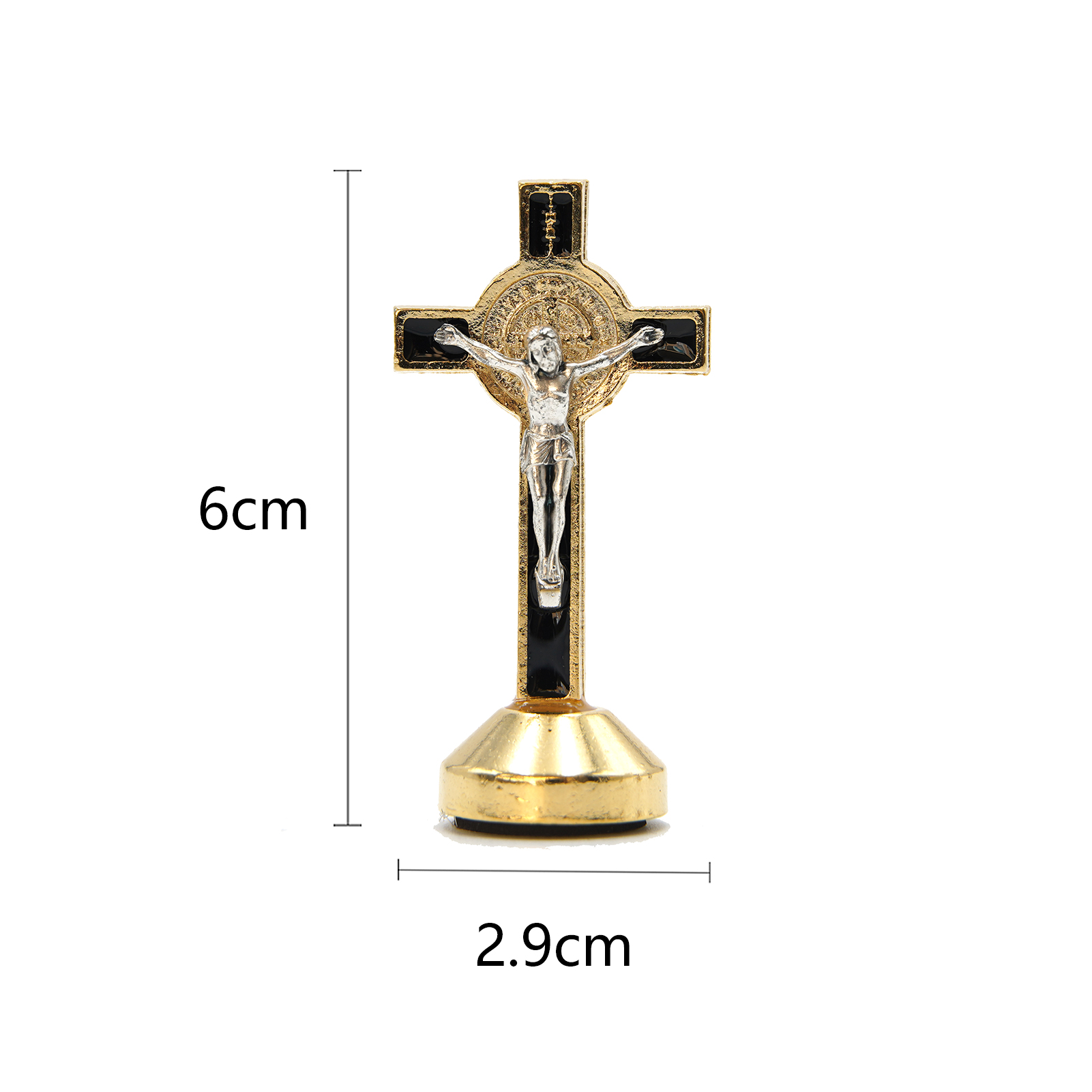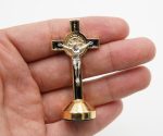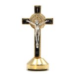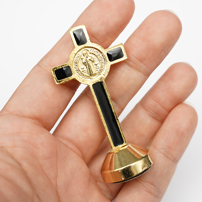 本笃十字架-金色黑珐琅带底座-6×2.9cm
