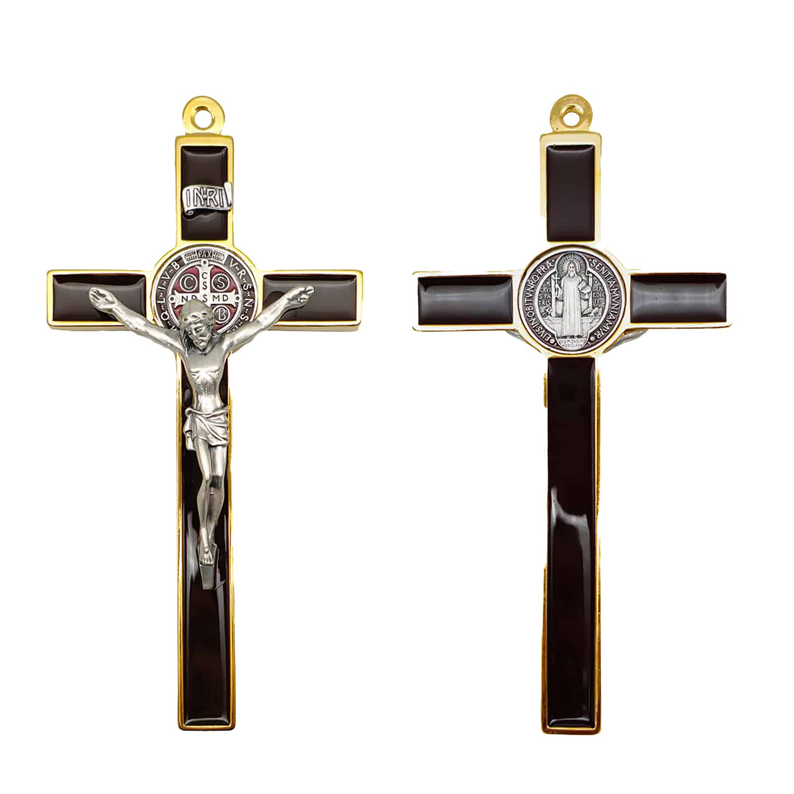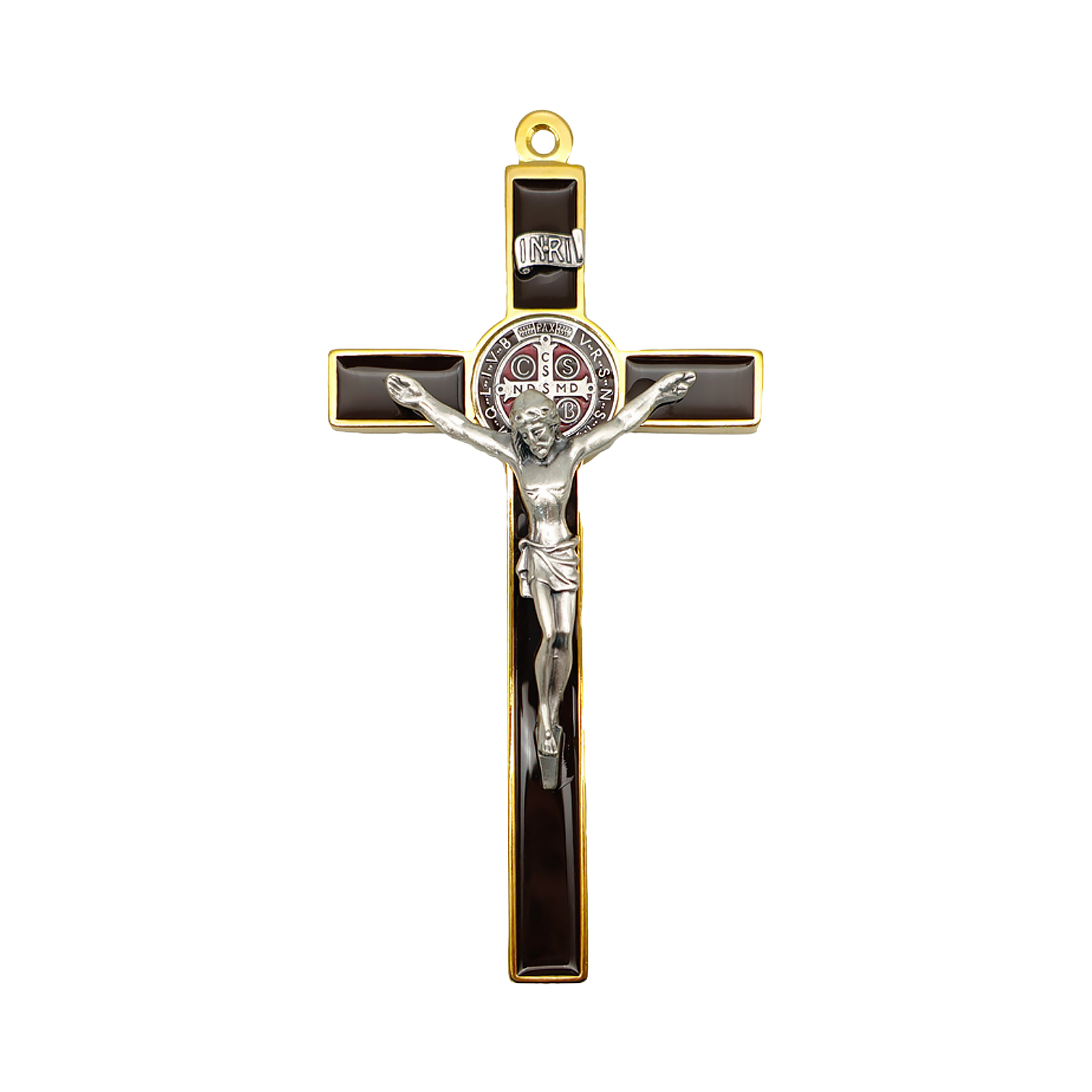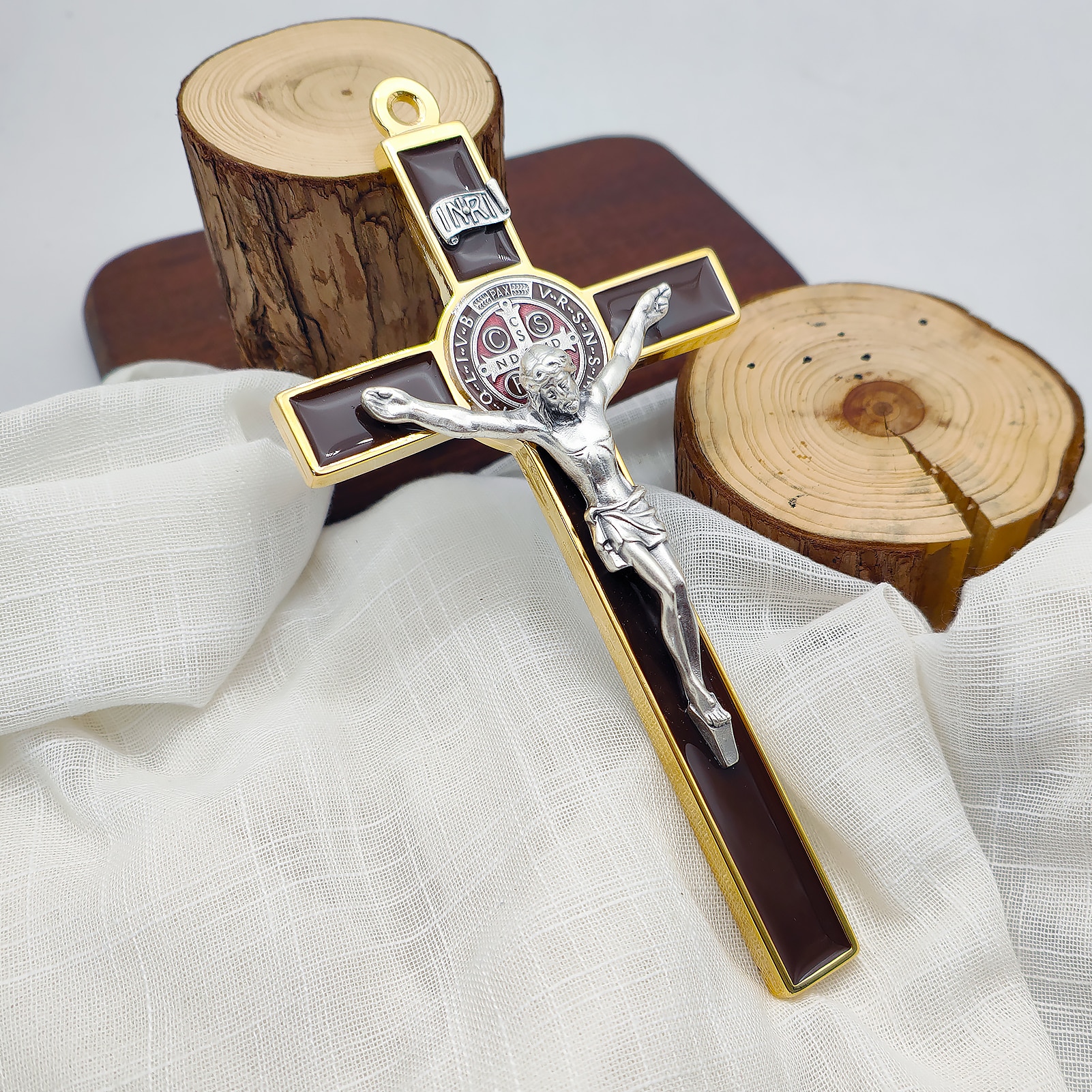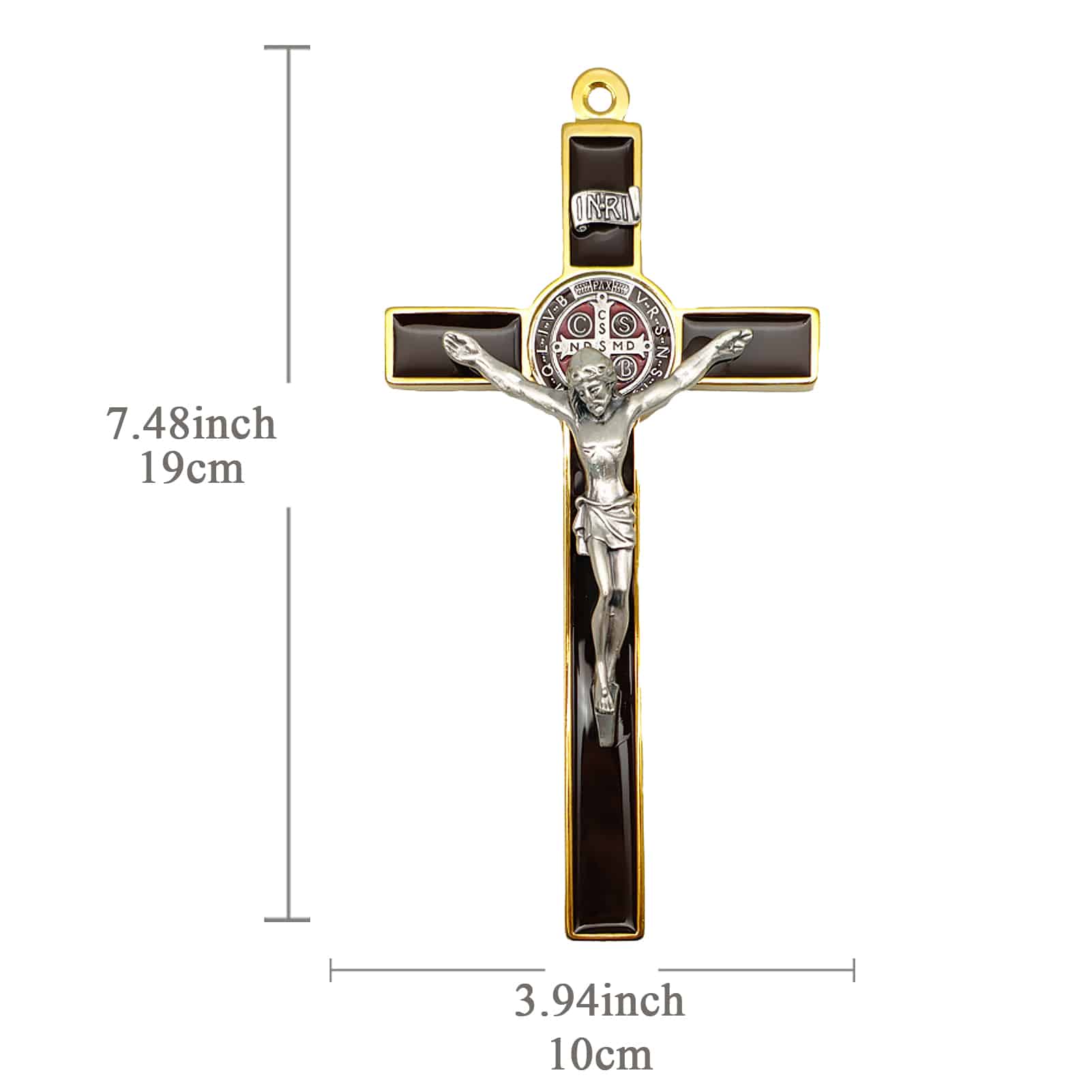 合金圣本笃十字架-金色棕色珐琅-19x10cm