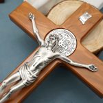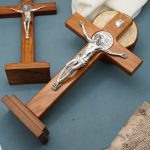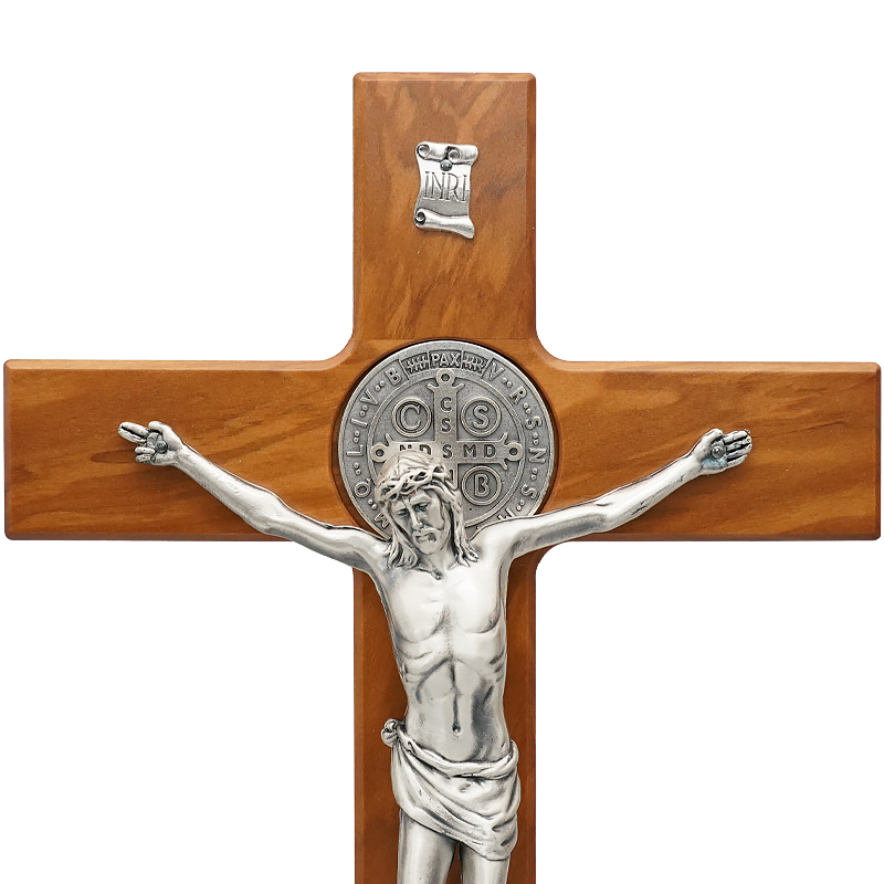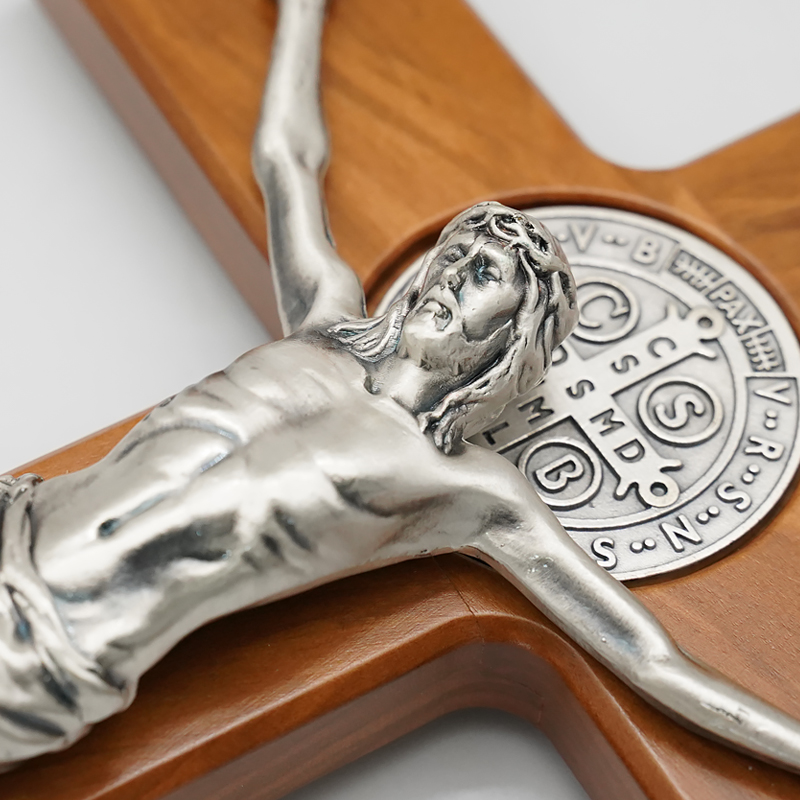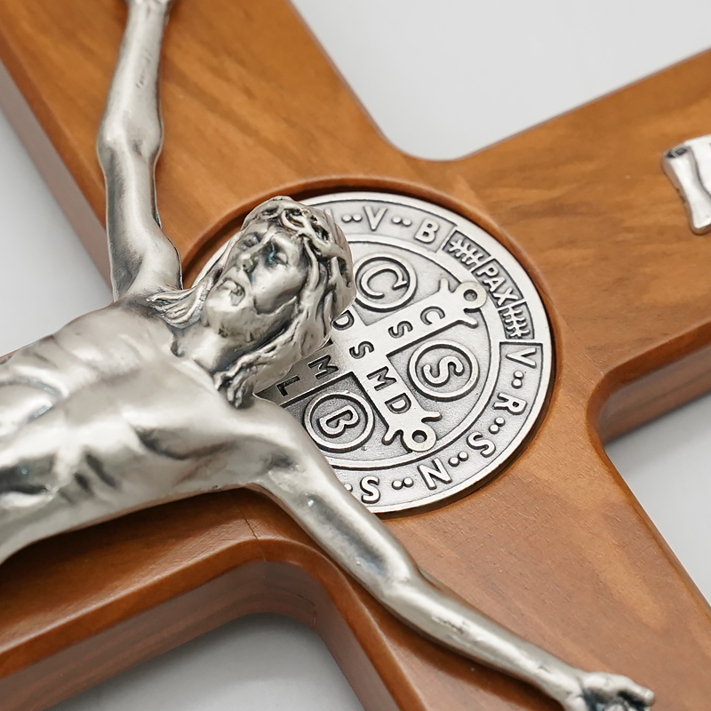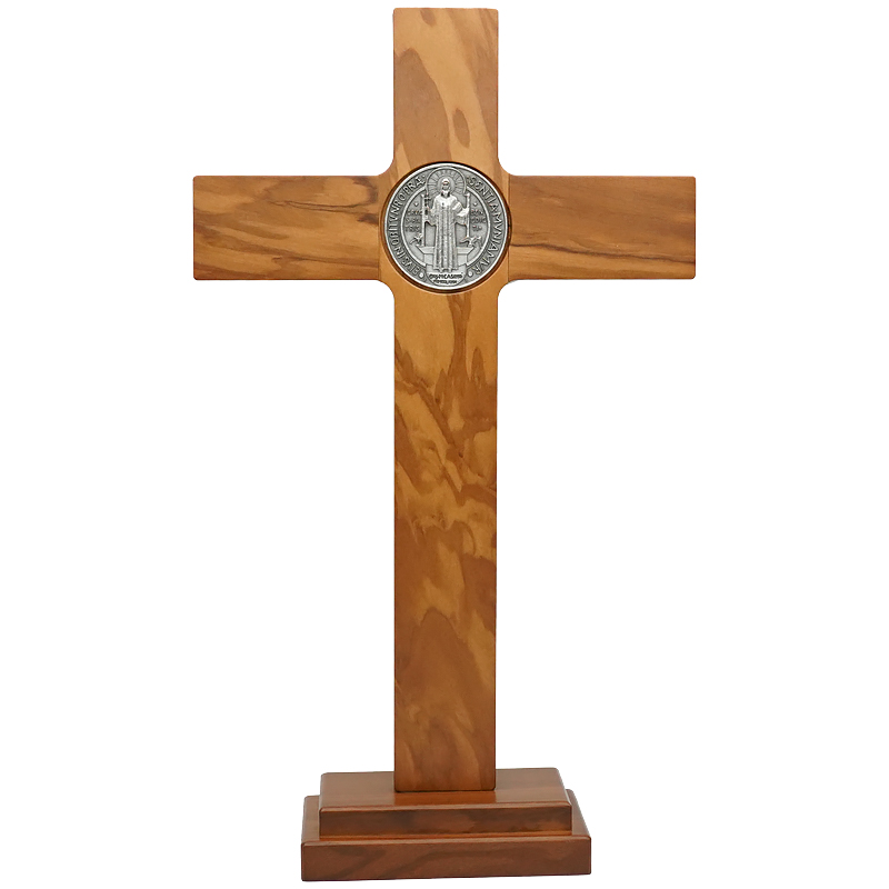 十字架-圣本笃-橄榄木染胡桃木色-带底座-33x19cm