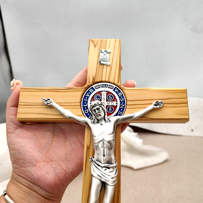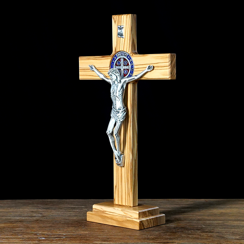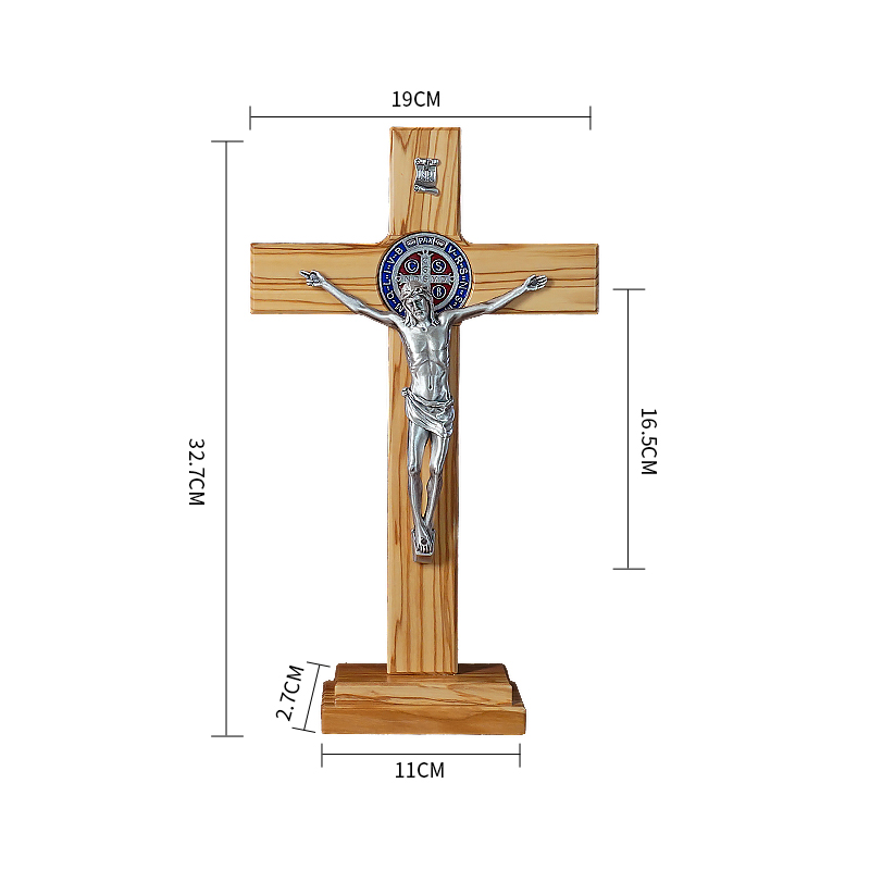 十字架-圣本笃-橄榄木带底座圣尸-33x19cm