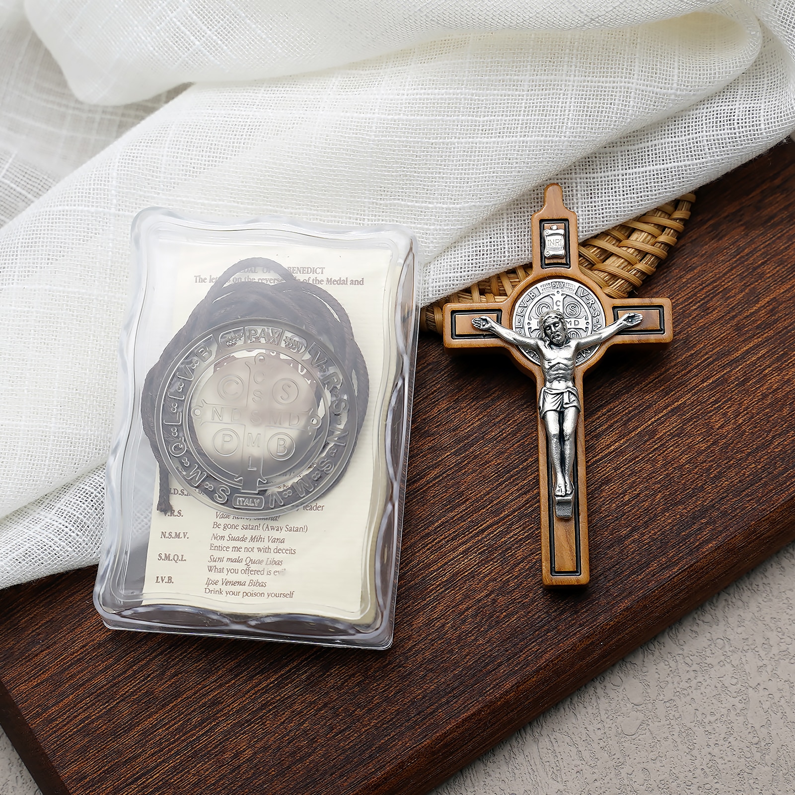 Cross – St. Benedict – Olive Wood – With Cord – 7.5cm