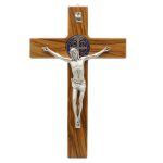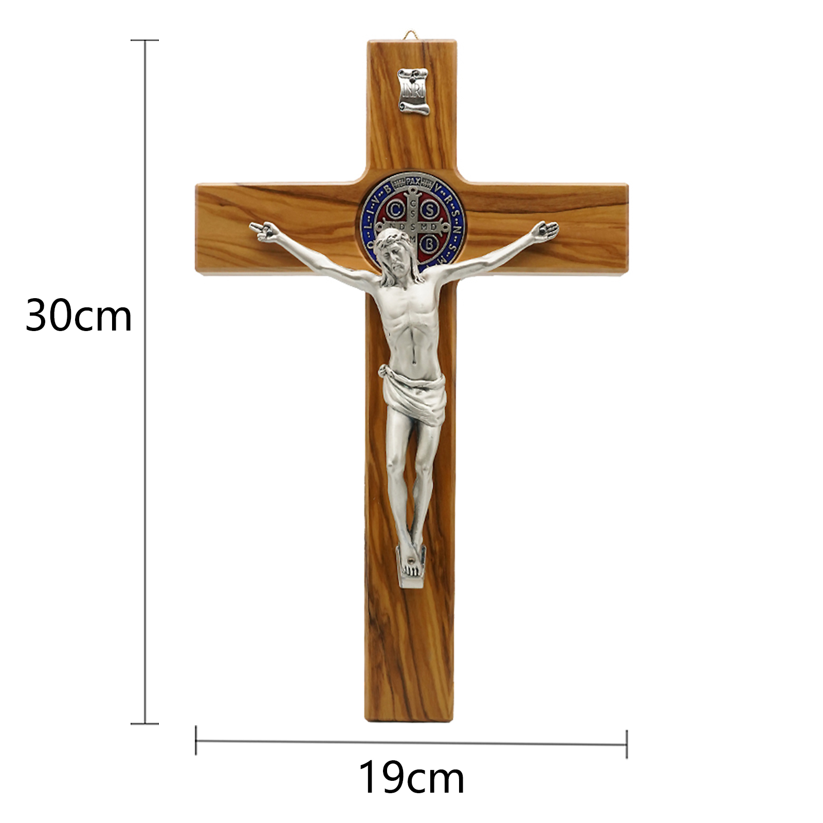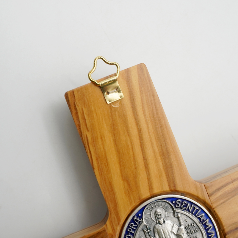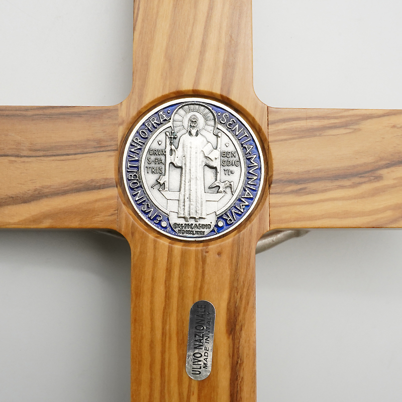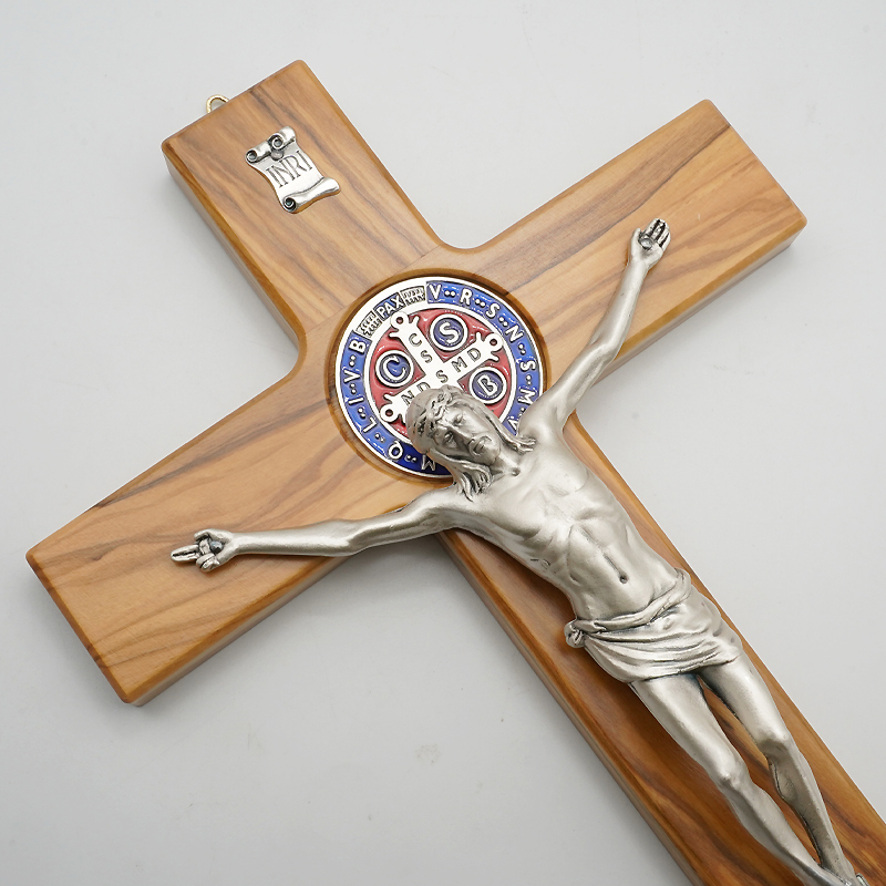 十字架-圣本笃-橄榄木镶珐琅圣牌合金圣尸-30x19cm