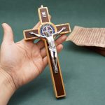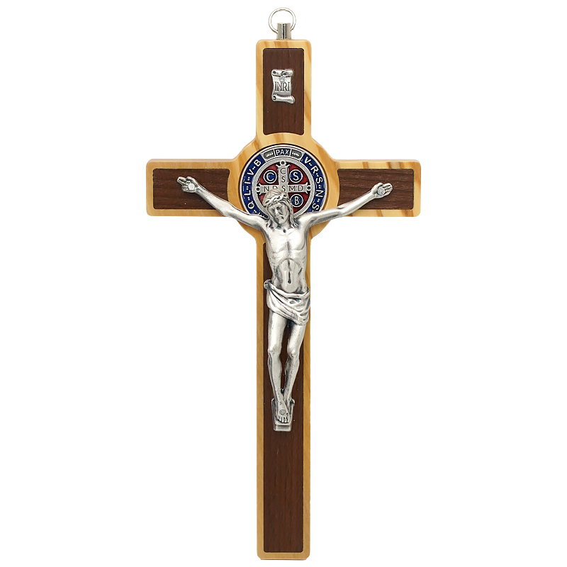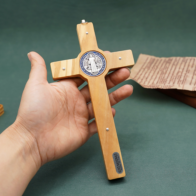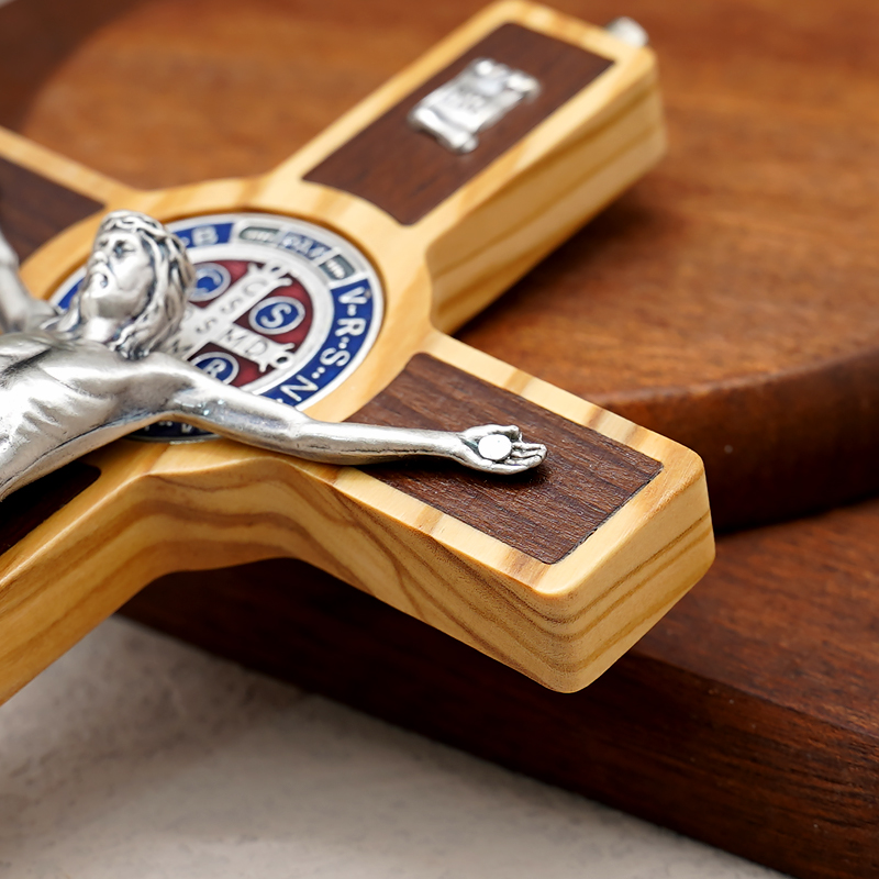 圣本笃十字架-橄榄木-镶嵌-带挂绳-19x10cm