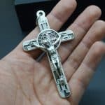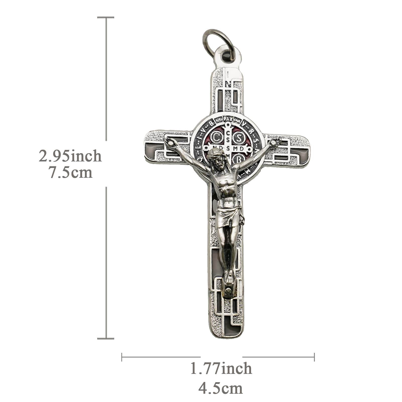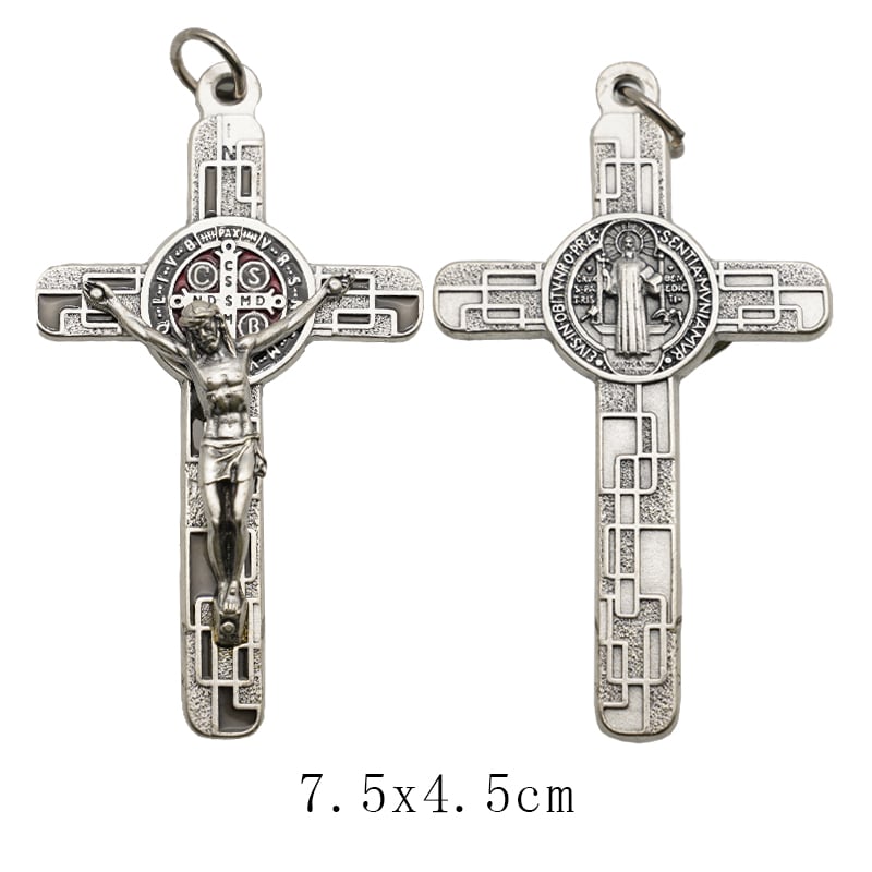 合金圣本笃十字架-镀银-珐琅处理-带包装盒-7.5×4.5cm-黑色